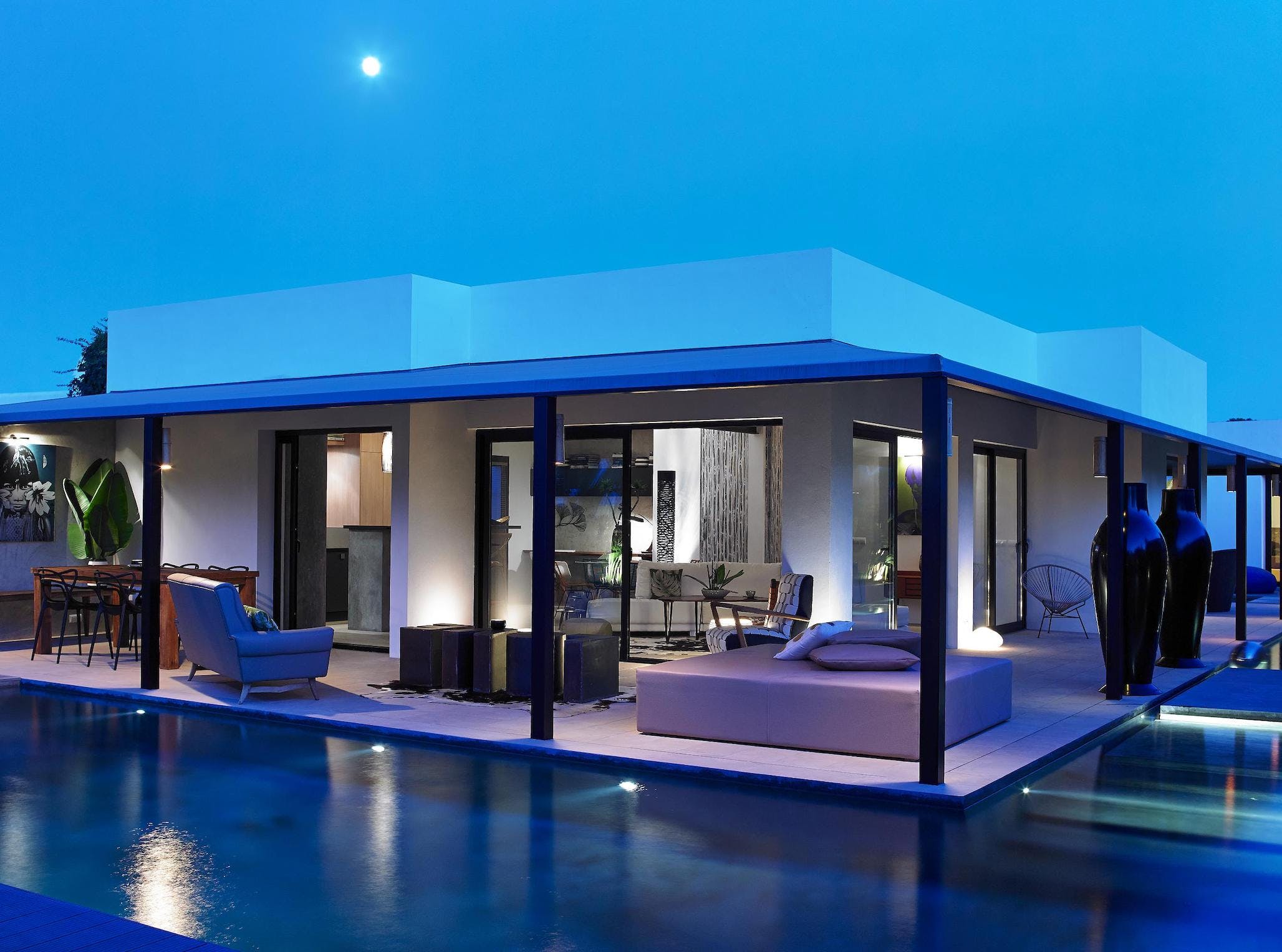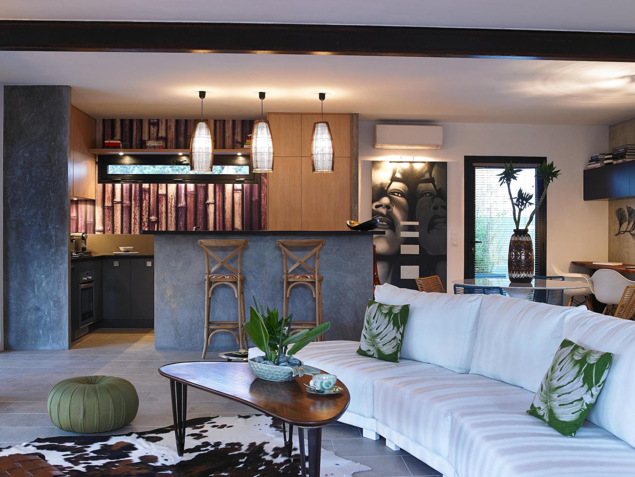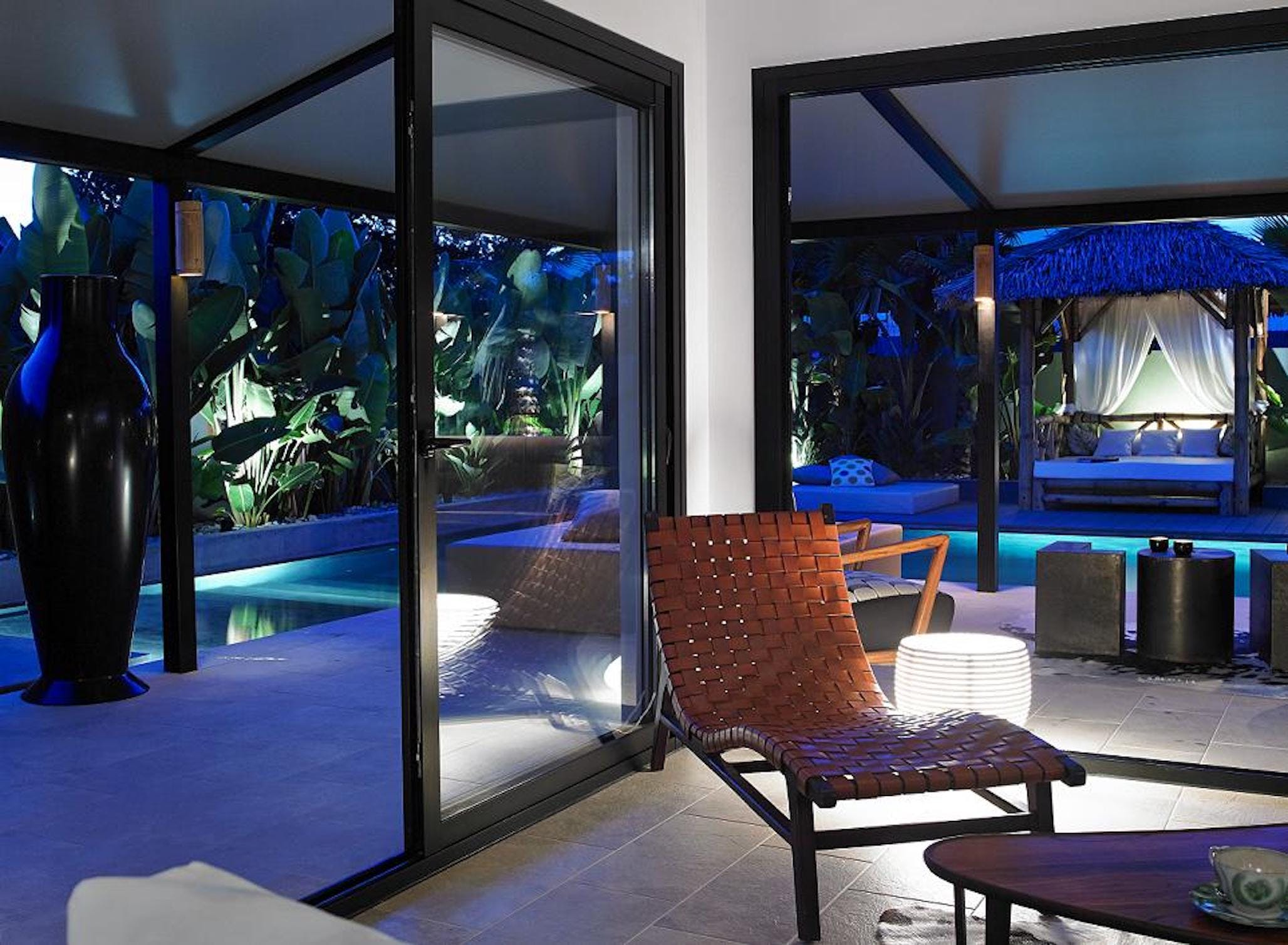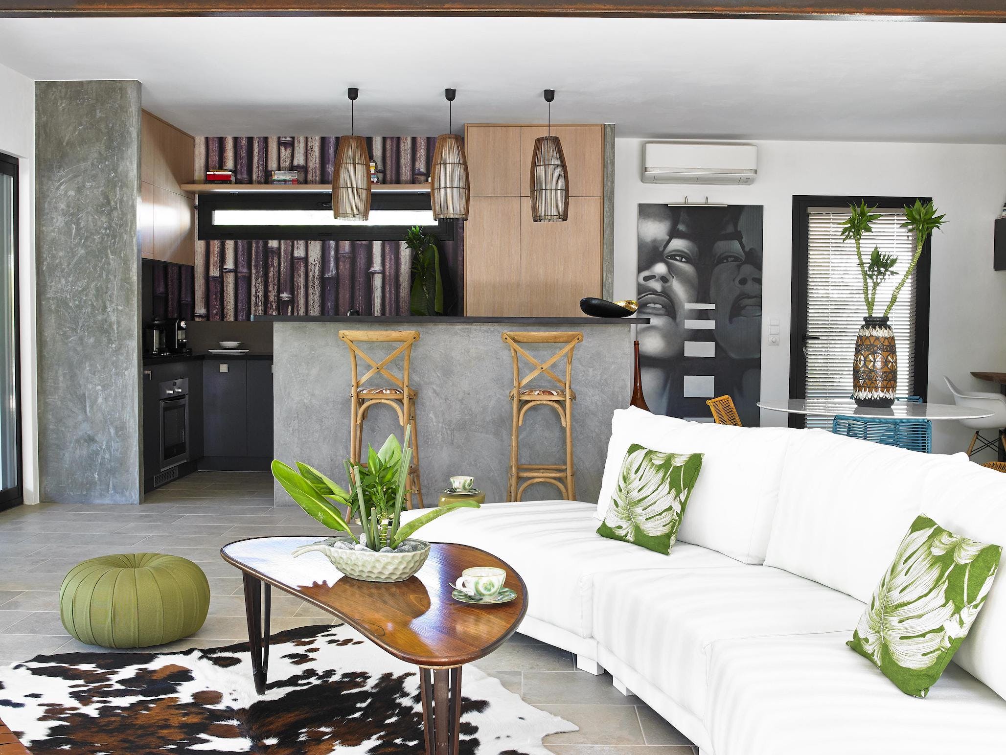 Equally, inside does not disappoint with quality details and selected designer furniture. The open-plan living areas include the lounge with large modern sofa, TV with satellite, air conditioning, music deck, views to the pool and garden and a dining area seating 6 people.