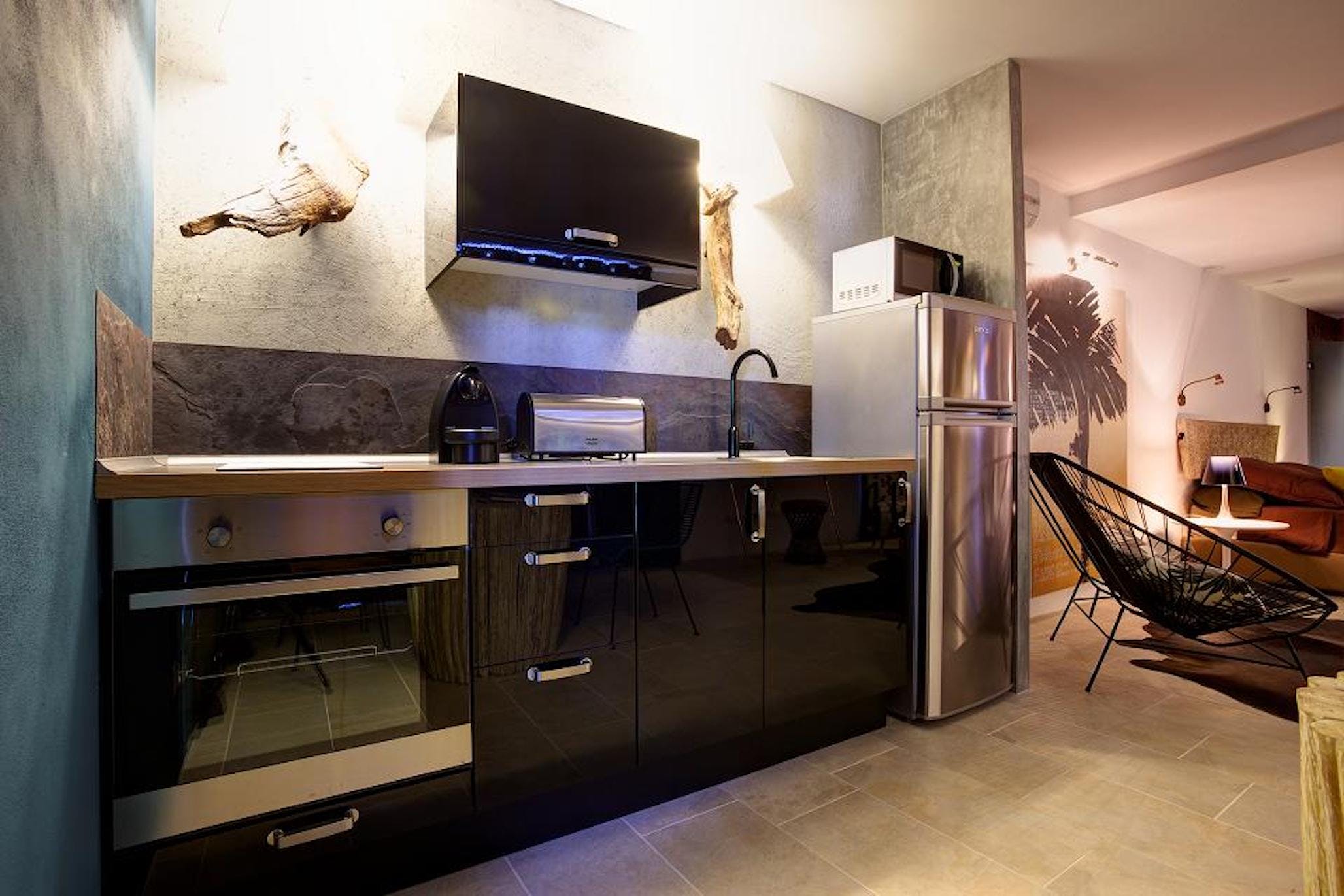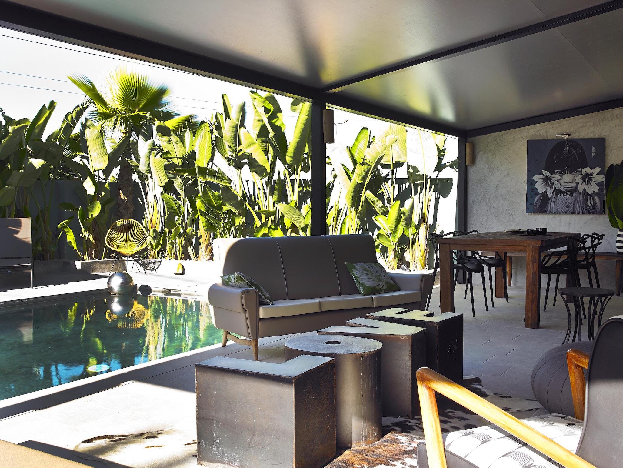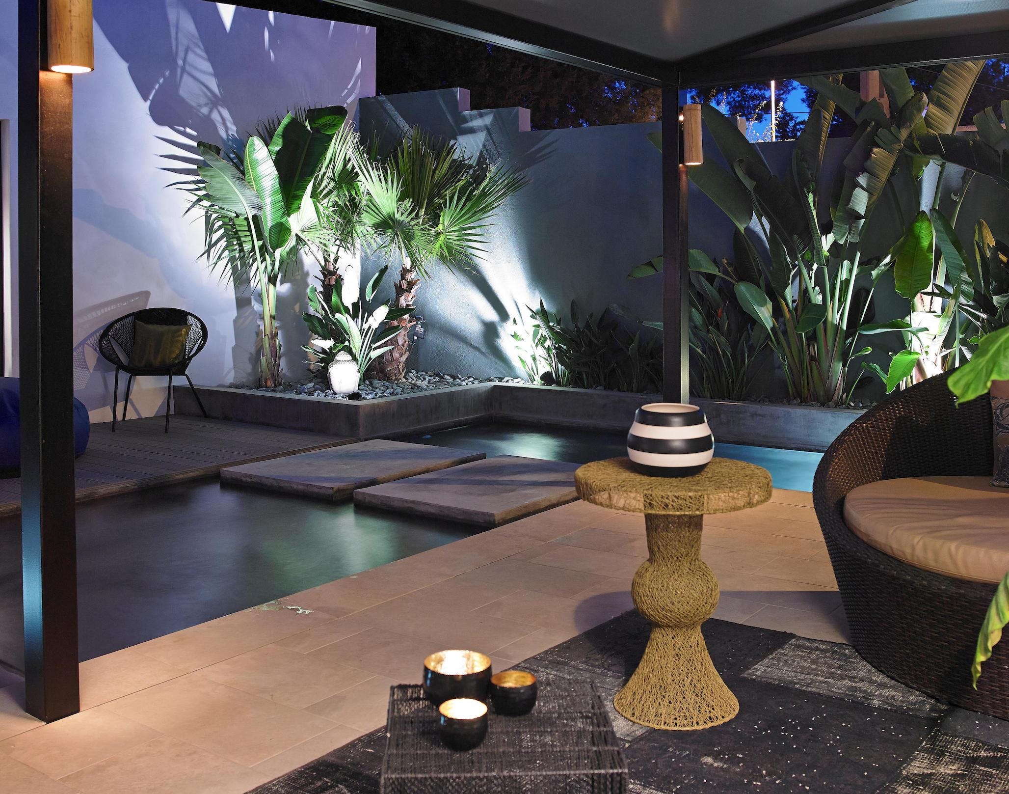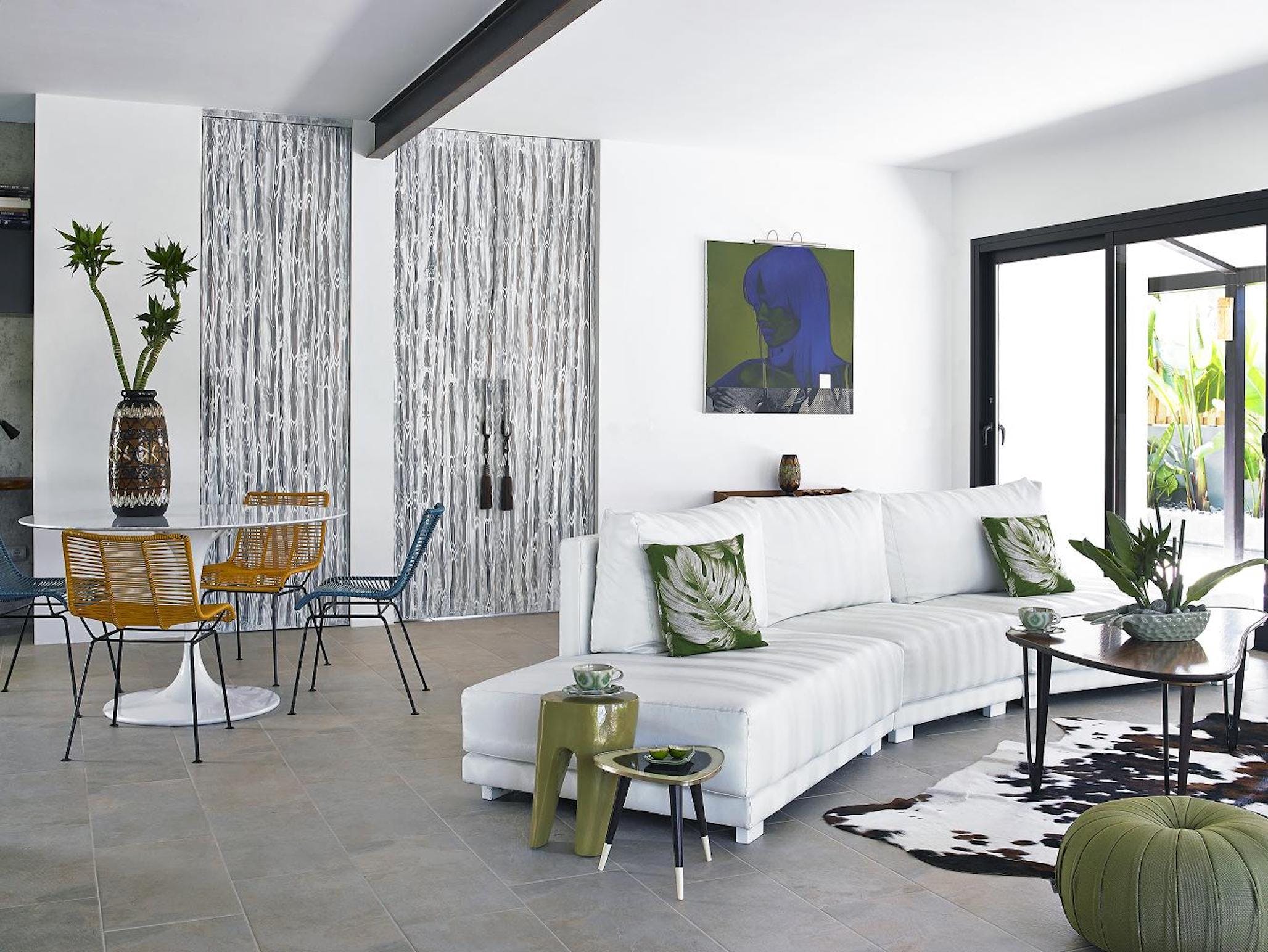 Main House – 40 sqm – King size bed, LED TV with satellite, French channel decoder, air conditioning, safe box. Private terrace / outdoor lounge area with a large circular sofa, Barcelona chair and Jacuzzi view. En-suite bathroom with bath and shower.