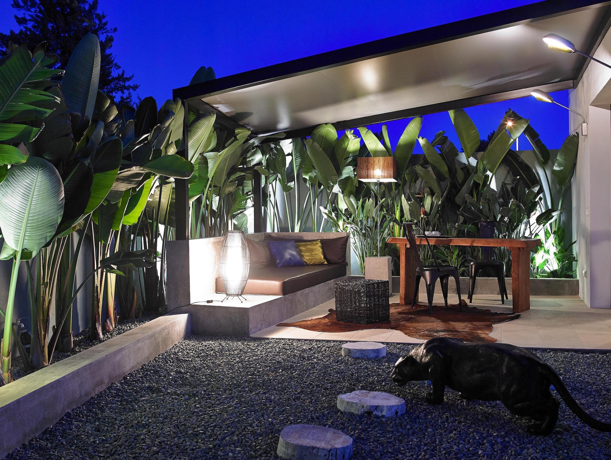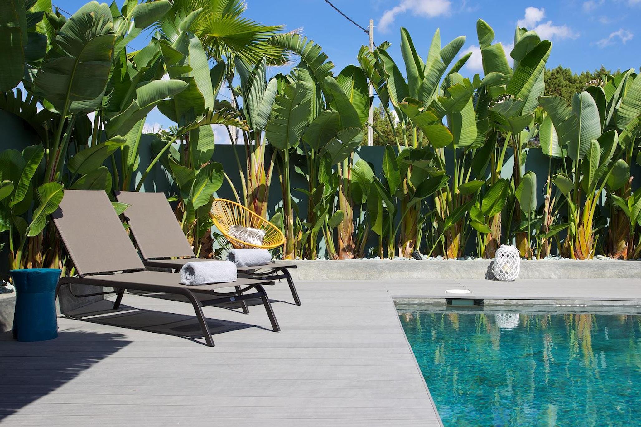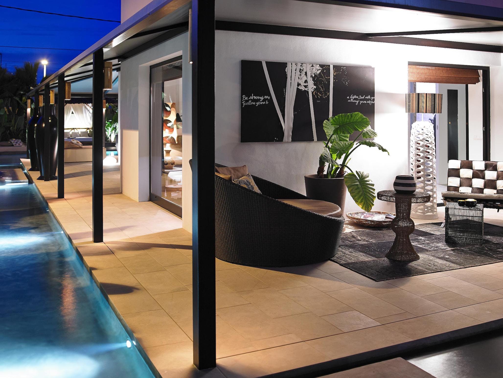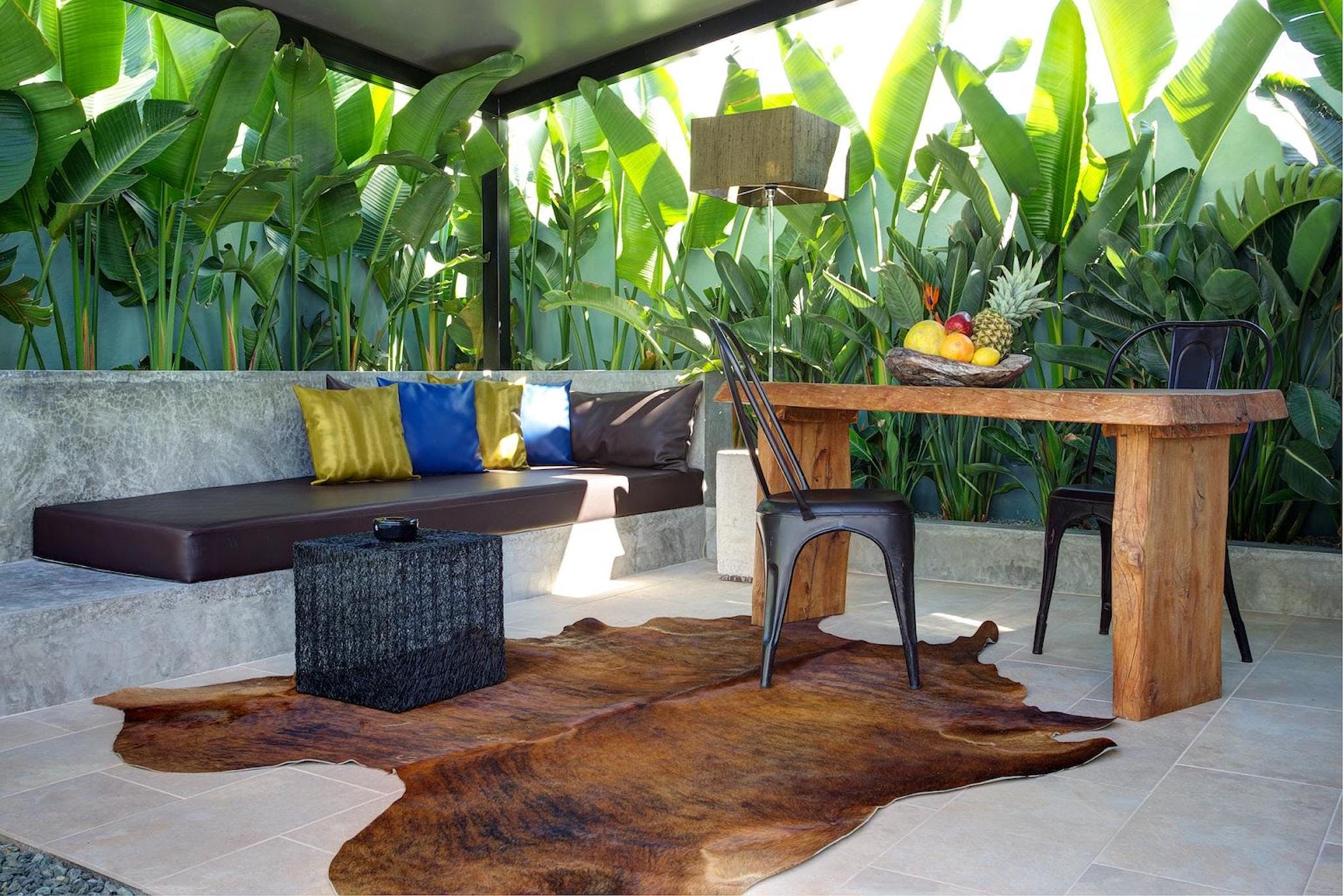 Take a dip in the Japanese style swimming pool (3.5 x 10m), relax in the Jacuzzi (2 x 2m) or pull up a lounger on the poolside wooden deck and bask in the warm Ibizan sunshine. On the terrace which wraps round property, the bespoke al-fresco living spaces are to be found and include a covered dining area seating eight, a lounge space with comfortable sofa seating and a king size lounge/day bed, all of which are surrounded by the stunning exotic gardens.