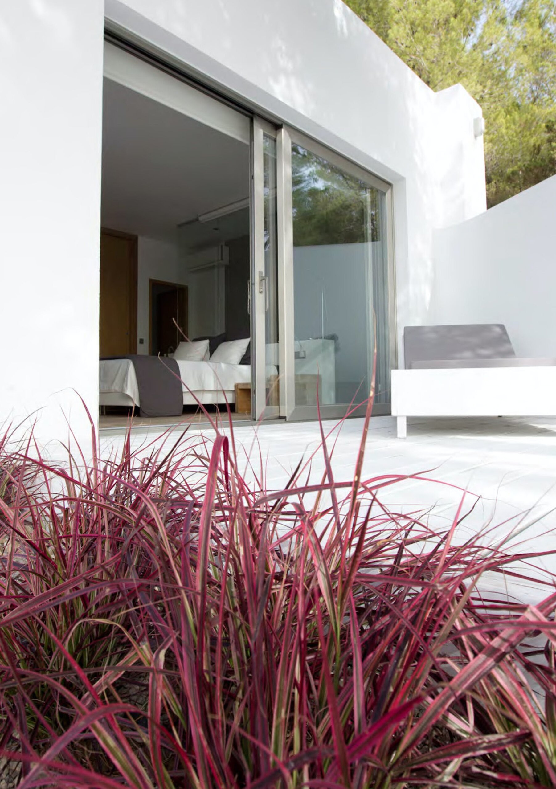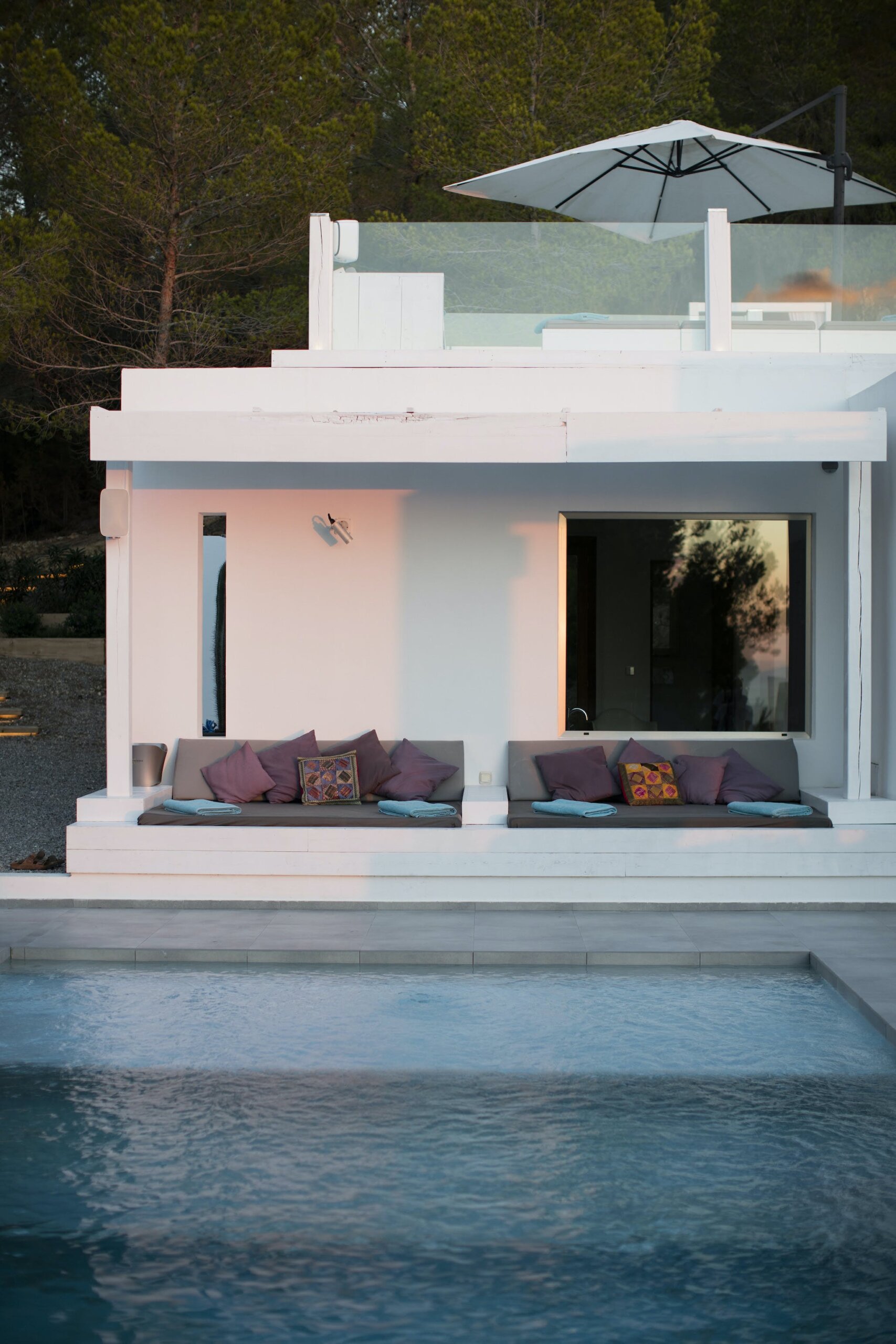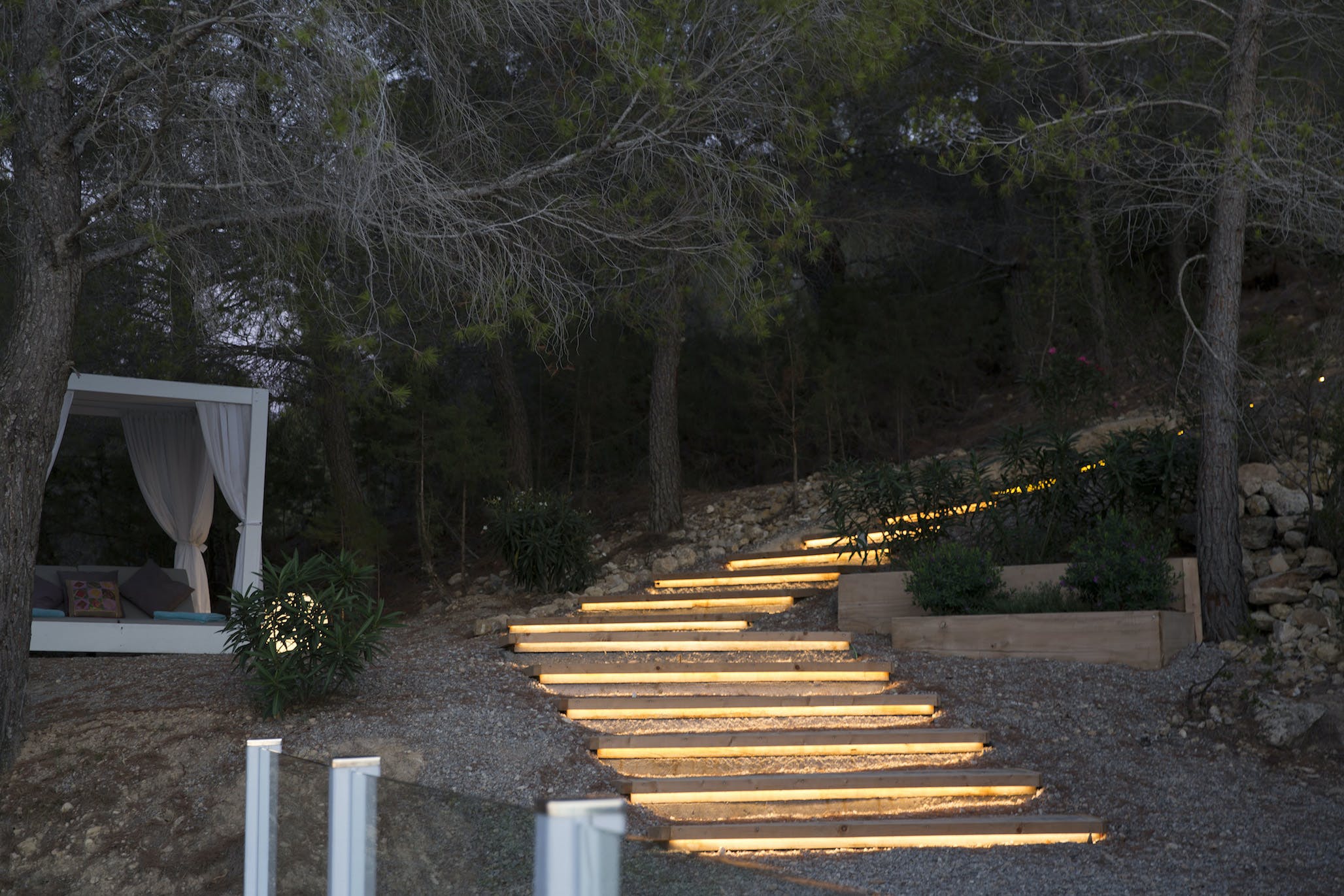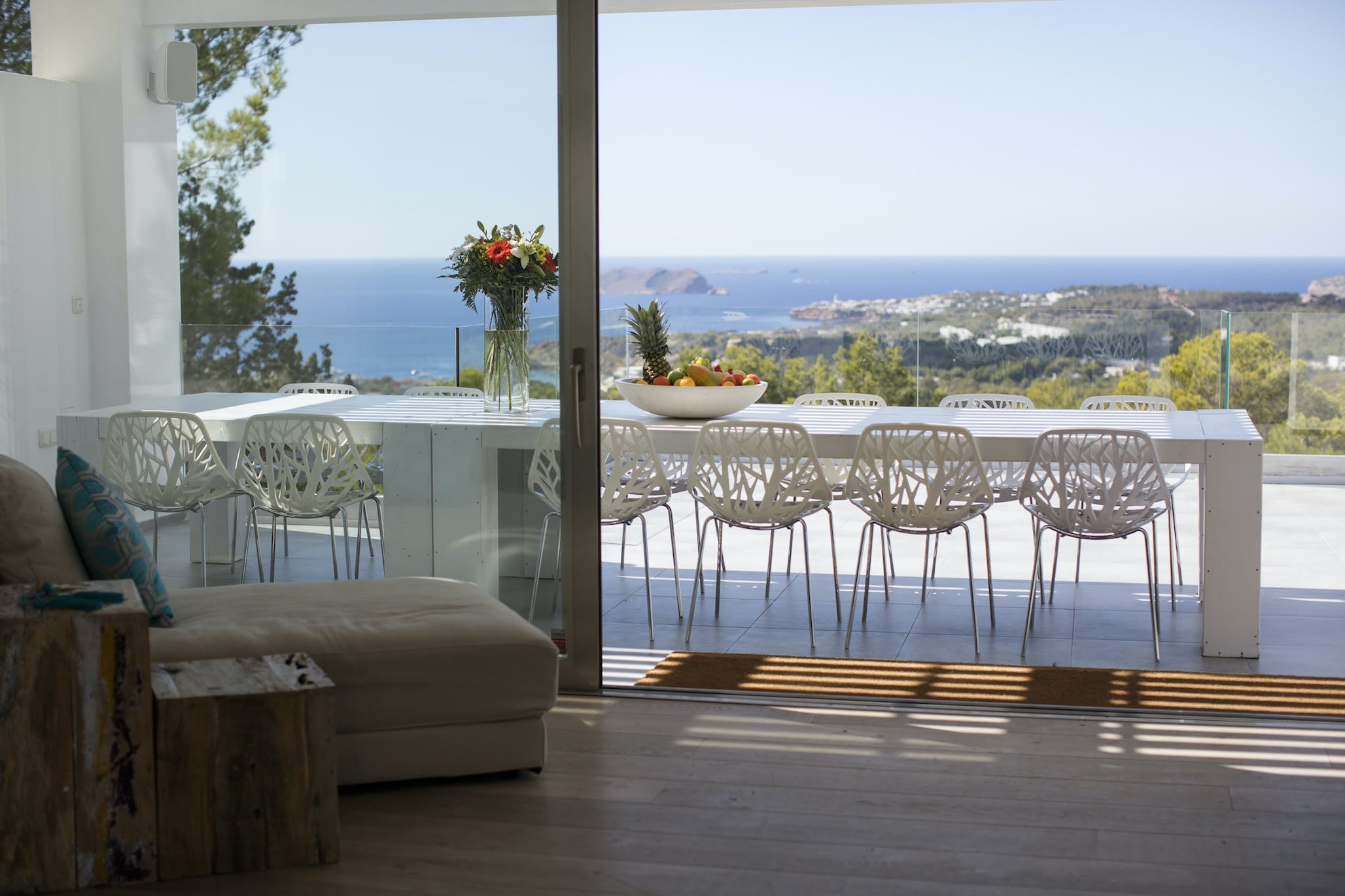 The Ibizan sun rises over the trees behind the property, lingers long in the warm blue Ibiza sky and then falls magnificently into the sea, bathing this little corner of the Mediterranean in the vibrant sunset hues for which this island is known.