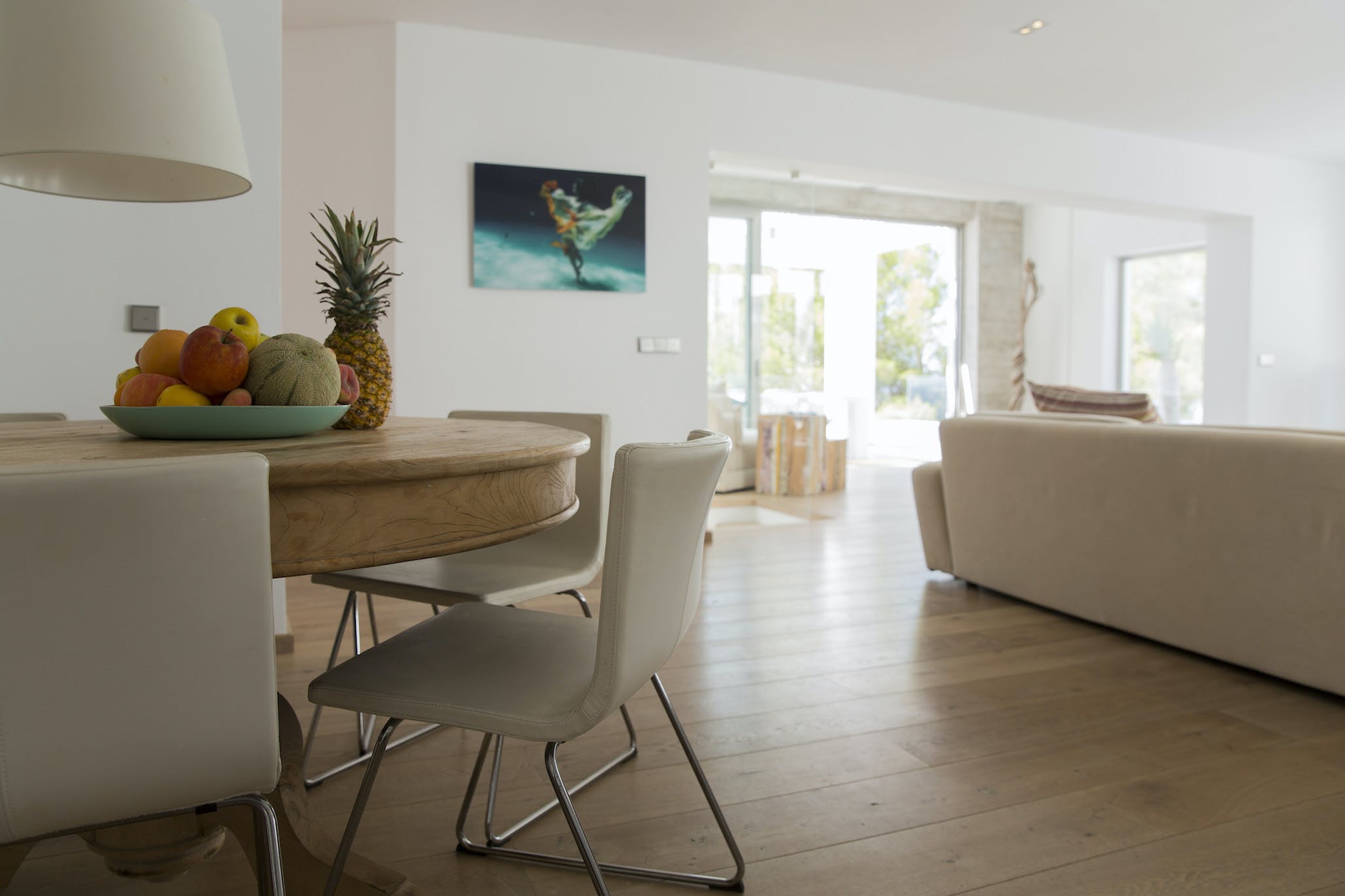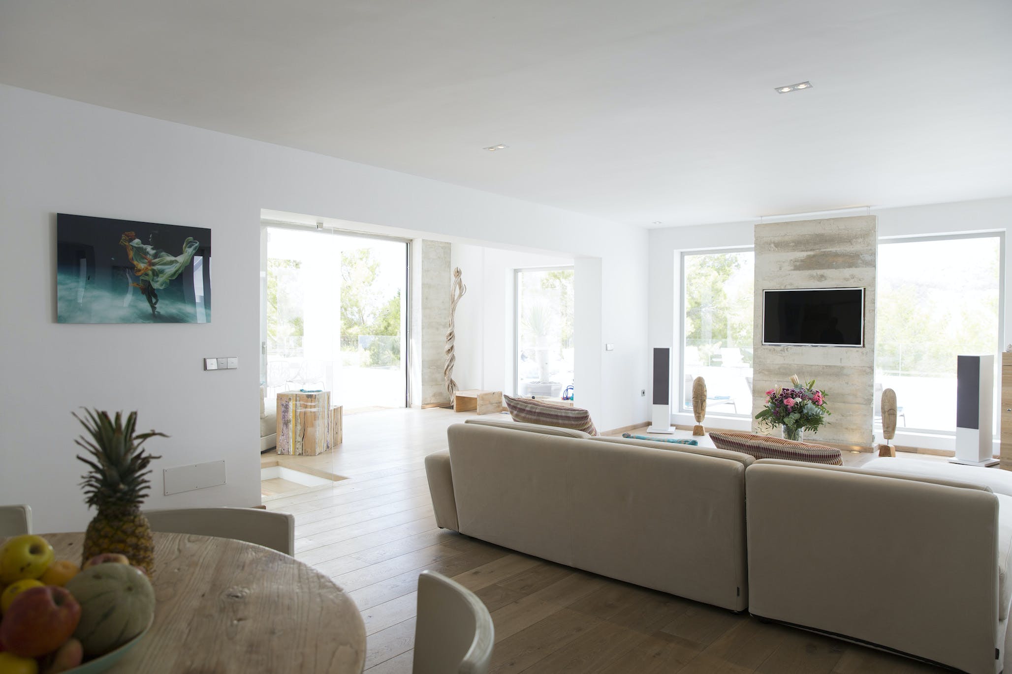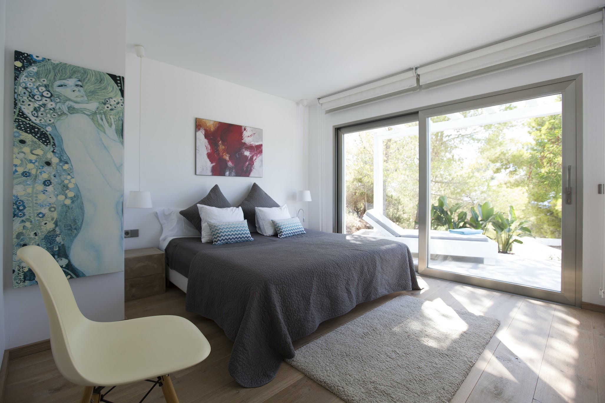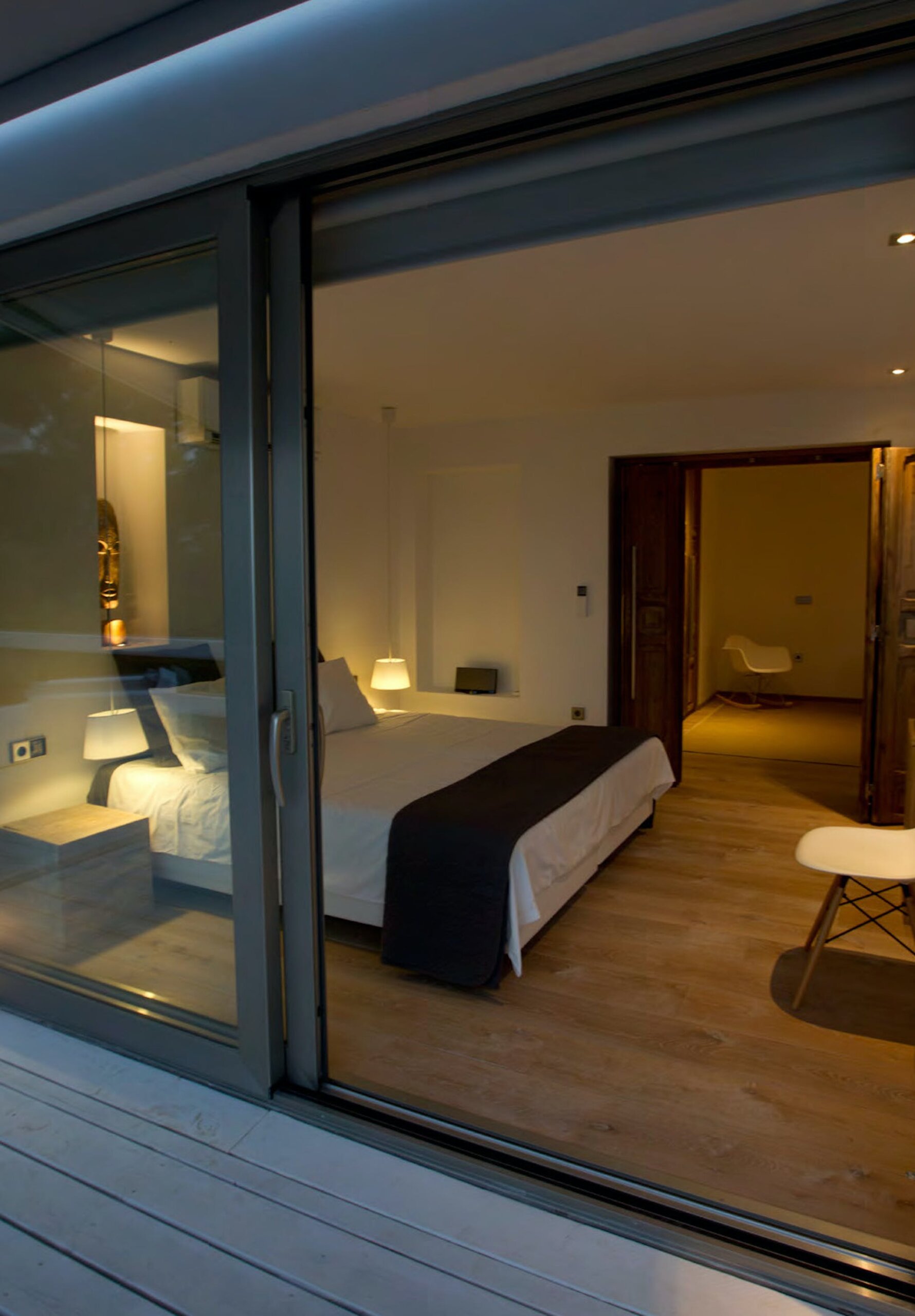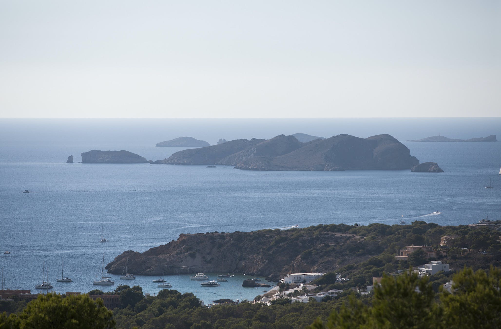 The Ibizan sun rises over the trees behind the property, lingers long in the warm blue Ibiza sky and then falls magnificently into the sea, bathing this little corner of the Mediterranean in the vibrant sunset hues for which this island is known.