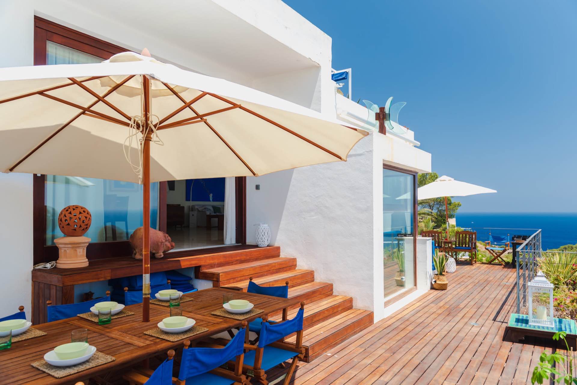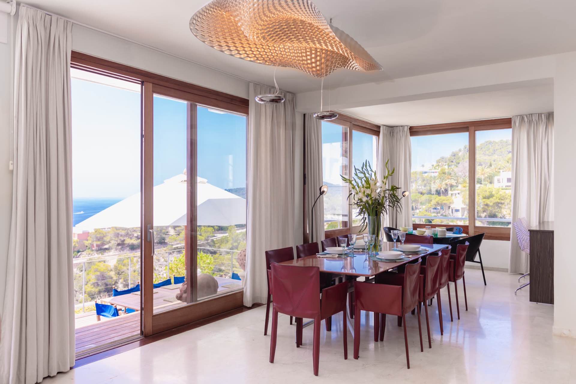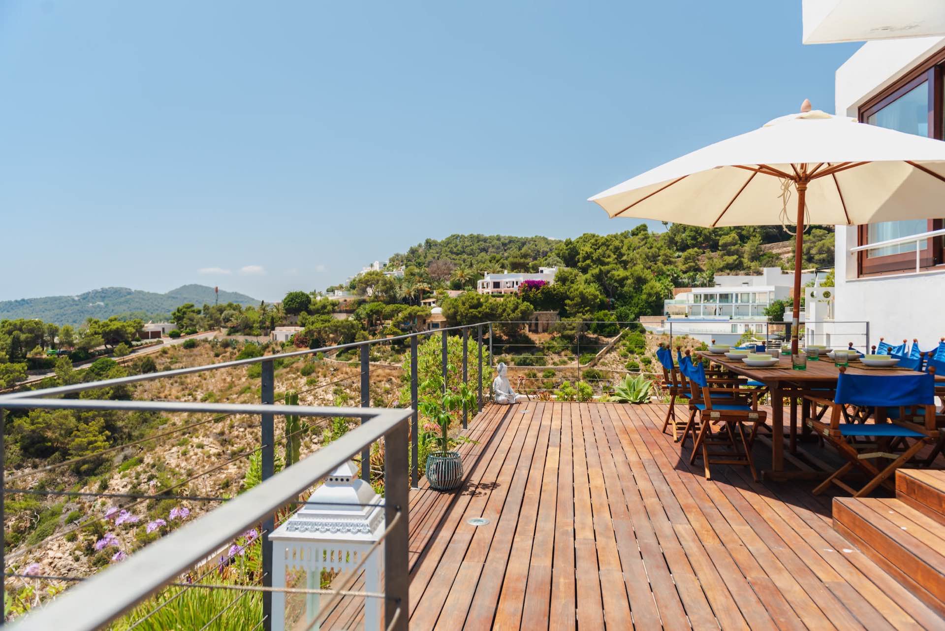 Situé au sommet de la colline dans l’urbanisation Roca Llisa, d’où vous pouvez profiter de l’une des plus belles vues sur la mer et les îles. Cette villa se trouve dans l’impressionnante urbanisation de Roca Llisa, située entre les villages de Jesús et Cala Llonga. Elle est considérée comme la meilleure urbanisation de l’île, car c’est un havre de luxe, de paix et de tranquillité, à quelques minutes d’Ibiza Town. Toutes les propriétés de la région sont situées sur un terrain montagneux face à la mer, ce qui garantit les plus belles vues sur la mer et les îles. Il s’agit d’une villa élégante et moderne développée sur deux niveaux avec quatre chambres, quatre salles de bains et trois terrasses différentes offrant des vues sur la mer à couper le souffle.