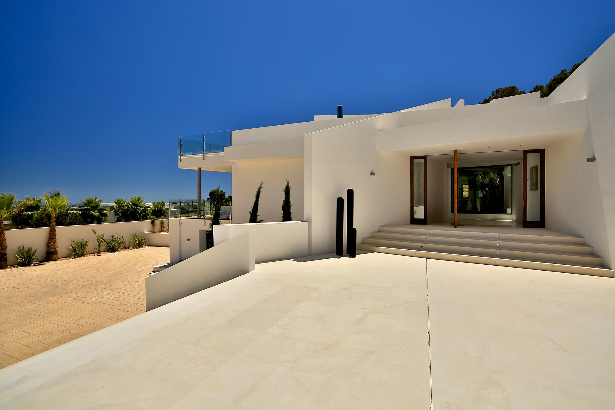 The stunning modern style and beautiful interior spaces of Sif Silvestre are a delight. The south facing pool and gardens offer a spectacular panoramic view of the blue bay of Es Torrent.