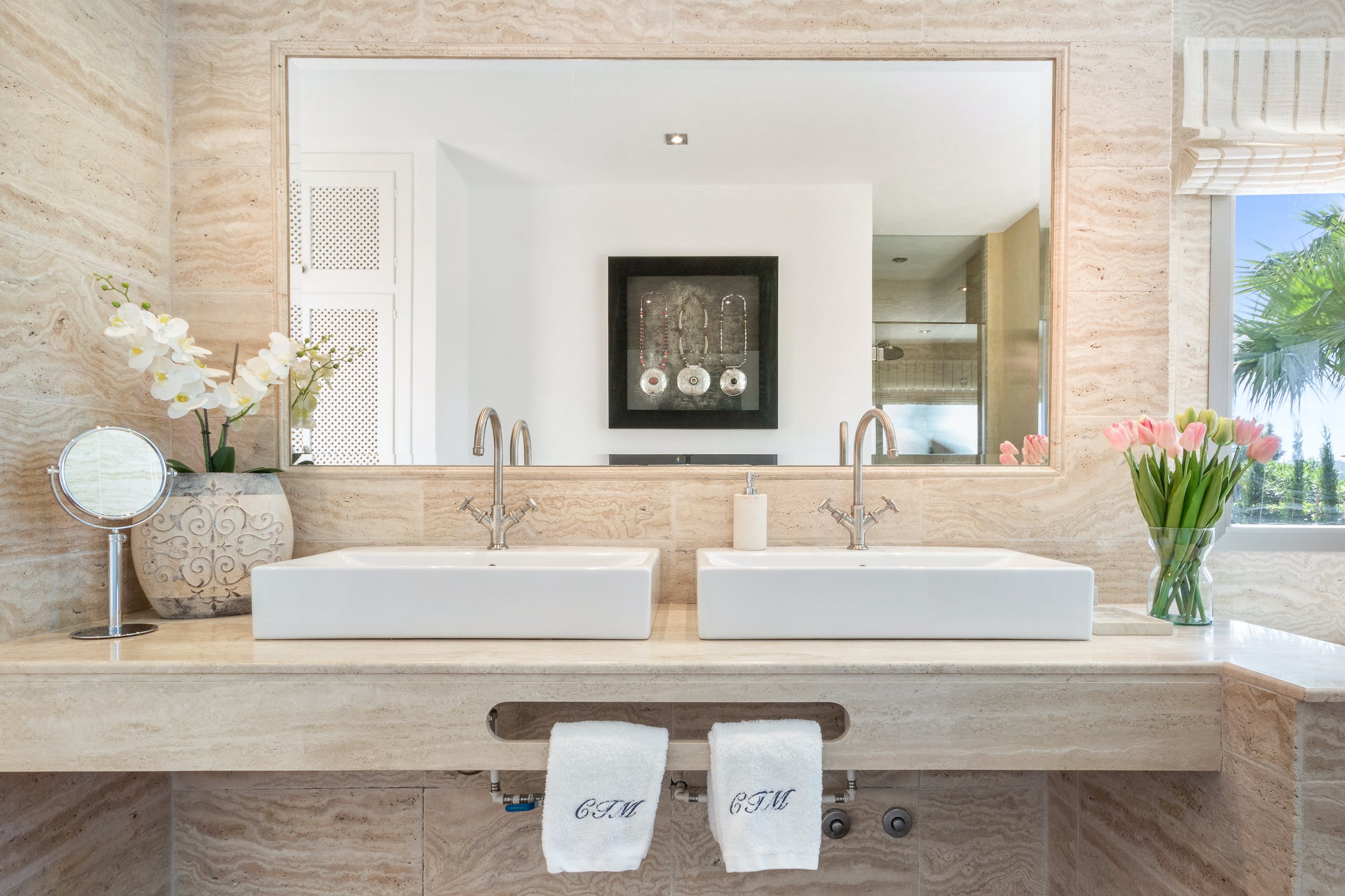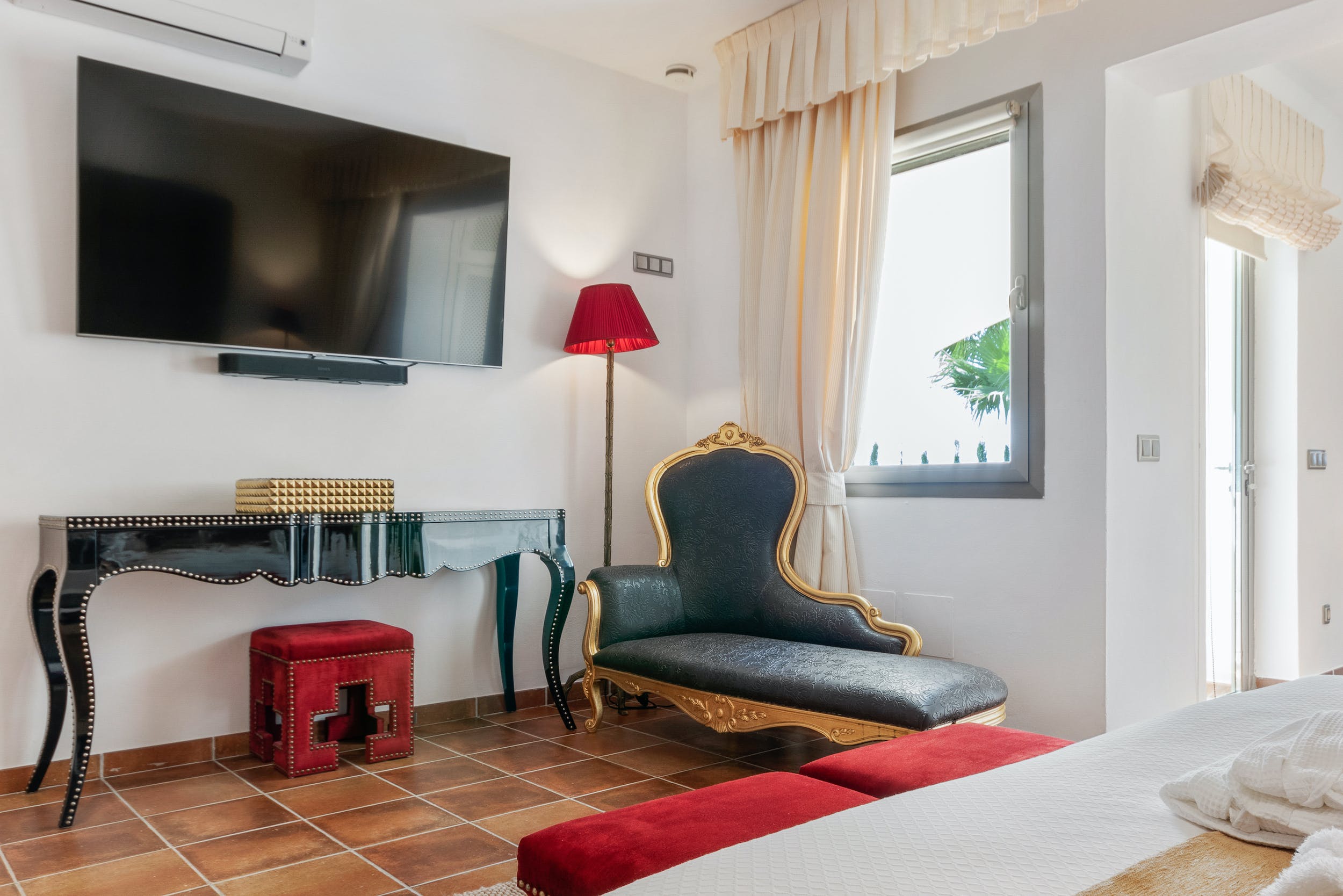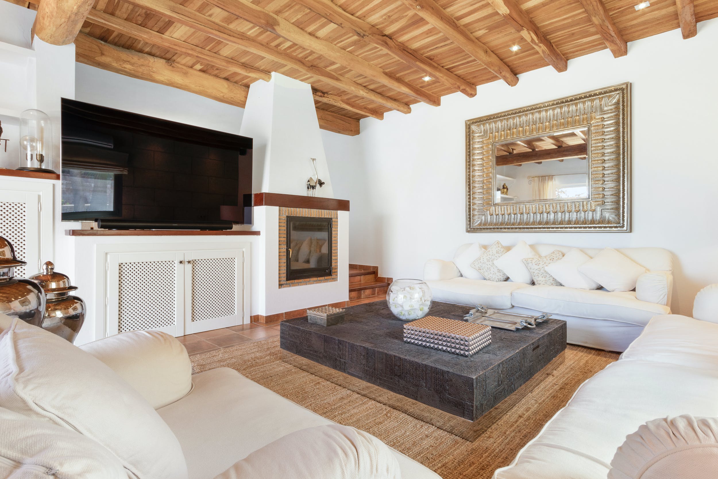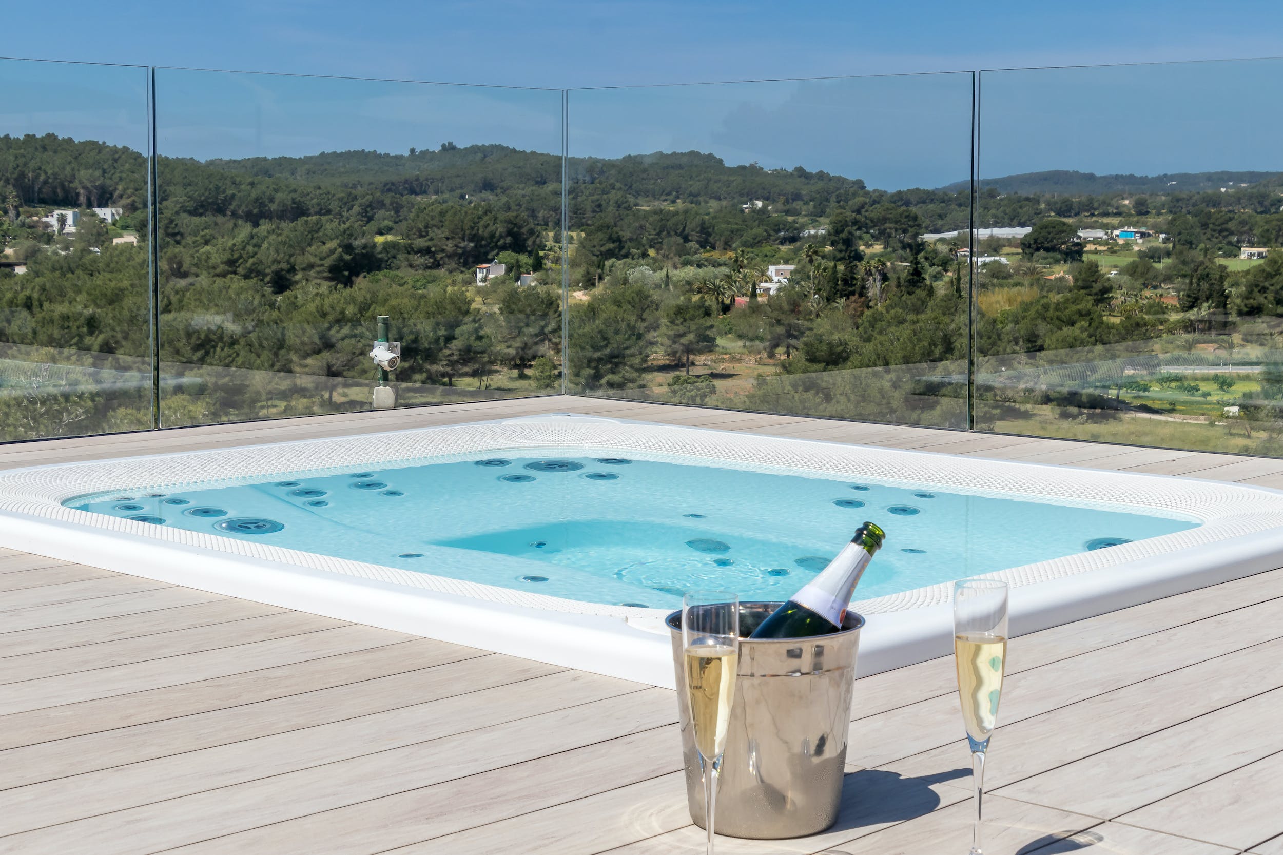 A wide terrace spans out from the house. Here, you can relax on luxurious daybeds, soak up the glorious Ibizan sunshine from a poolside lounger, or enjoy the 12m x 7m heated infinity pool.