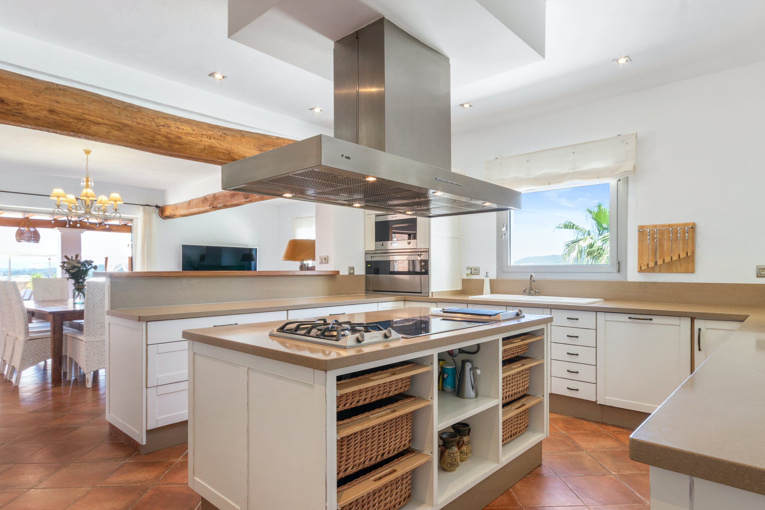 Across the pool, sofa seating is shaded by an attractive pergola. Close by, another terrace hosts the main outside dining area, seating eighteen, barbeque, and a well-equipped summer kitchen. This is a superb entertaining space, head out here at dusk when you can watch the sun set over the neighbouring hills.