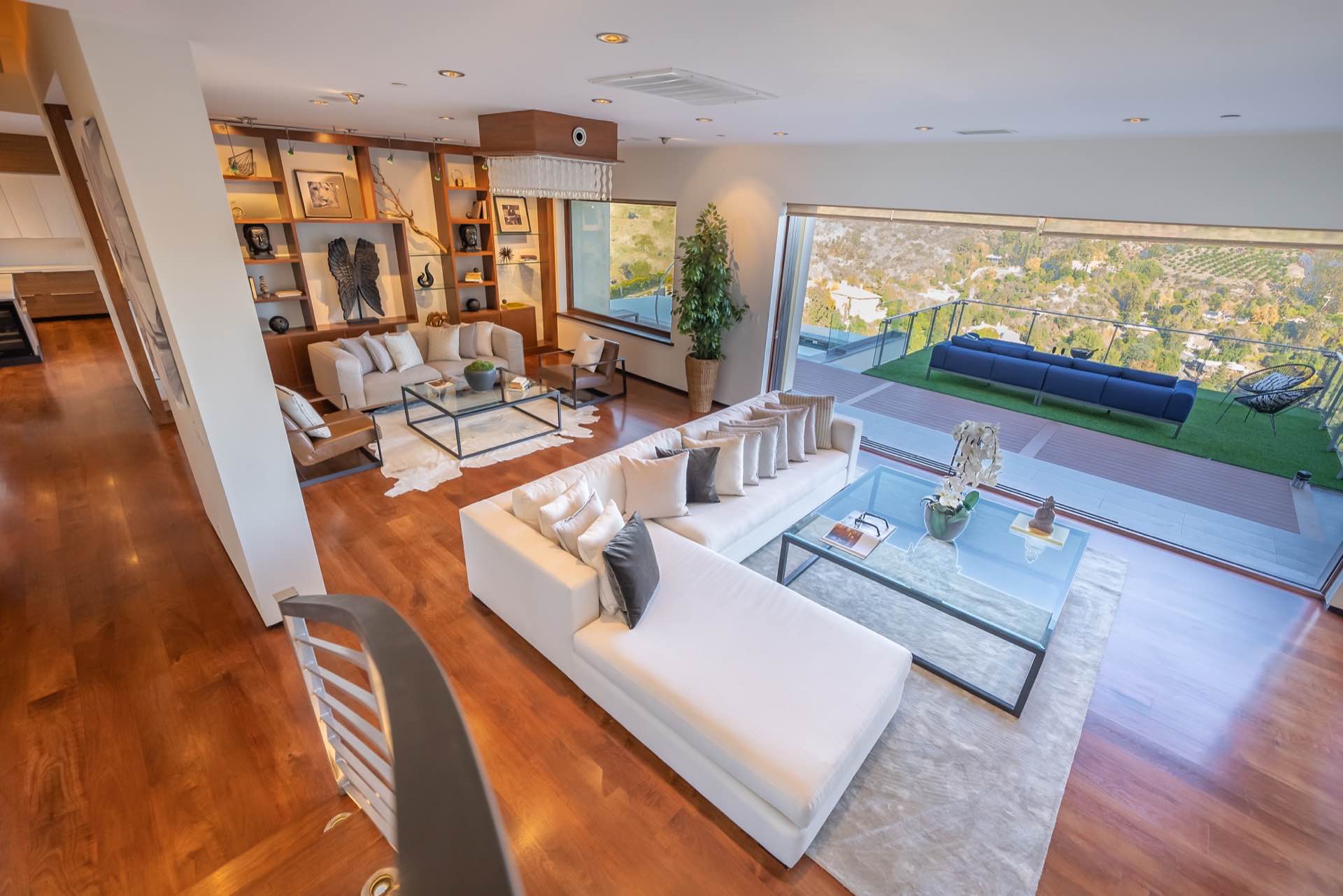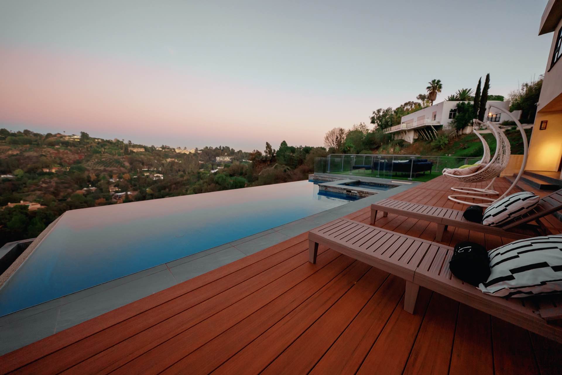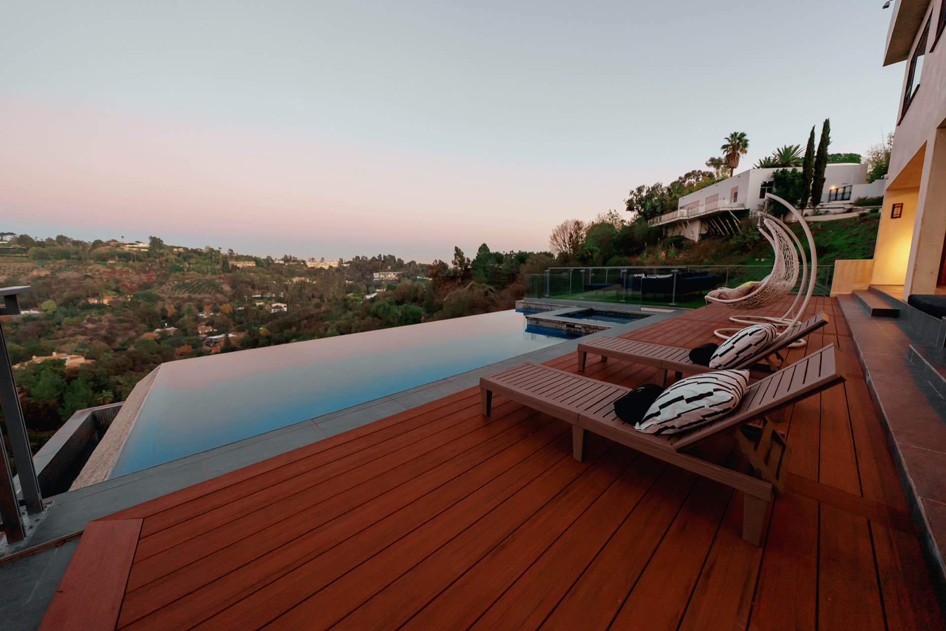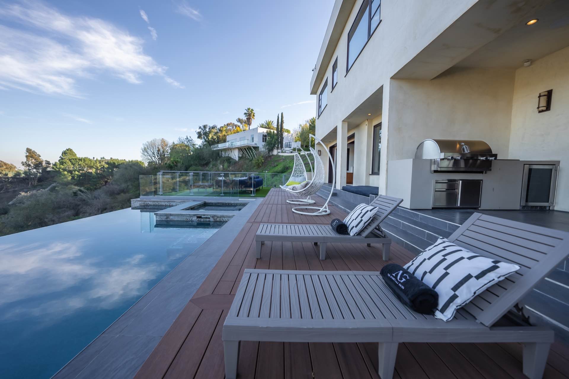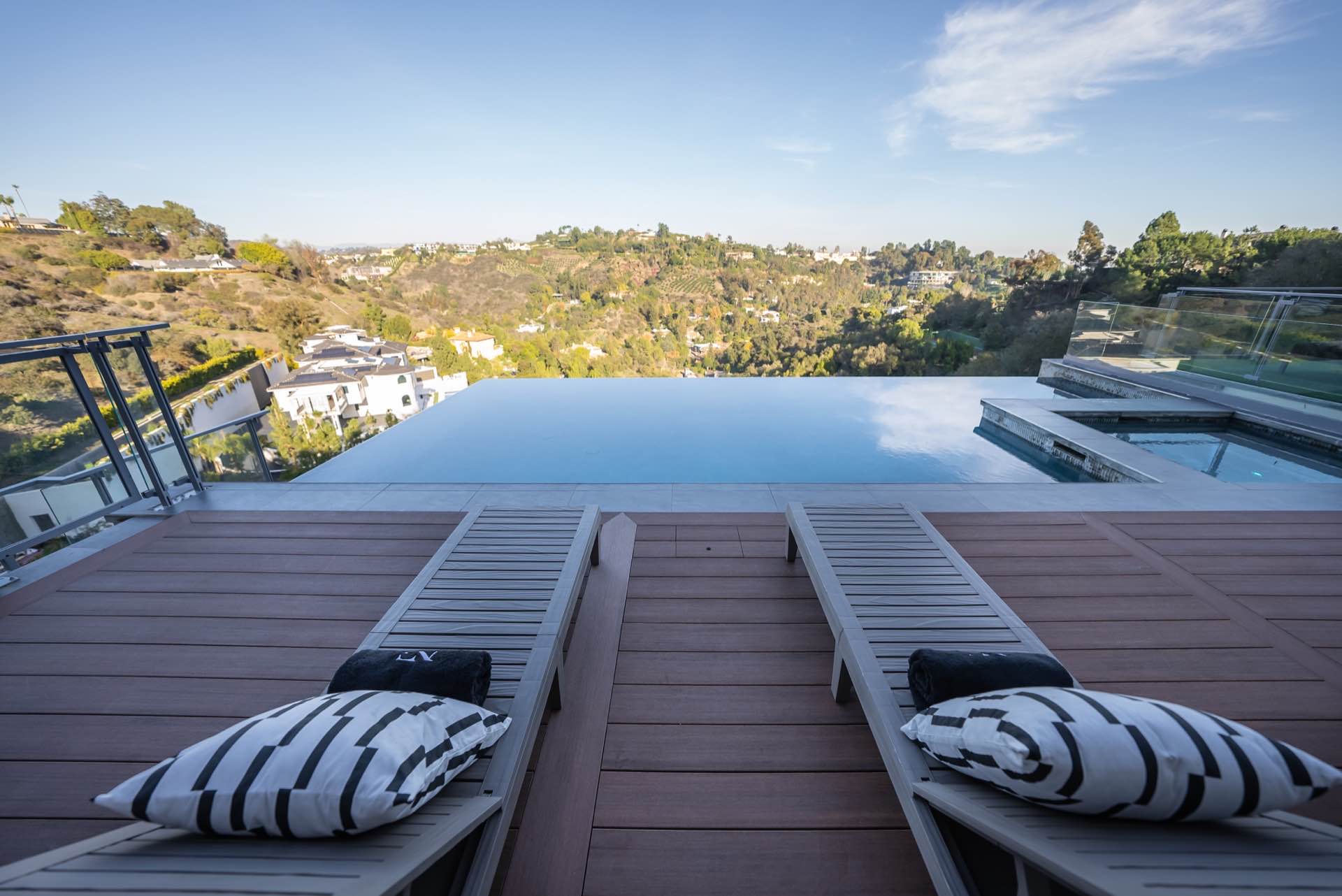 This sophisticated Bel Air modern villa boasts stunning endless views from every room. Tech savvy smart home system by Control 4 automates this awe-inspiring property. Pocketing walls of glass reveal an endless saltwater infinity pool with extraordinary view verandas, dining loggia, and entertaining deck.