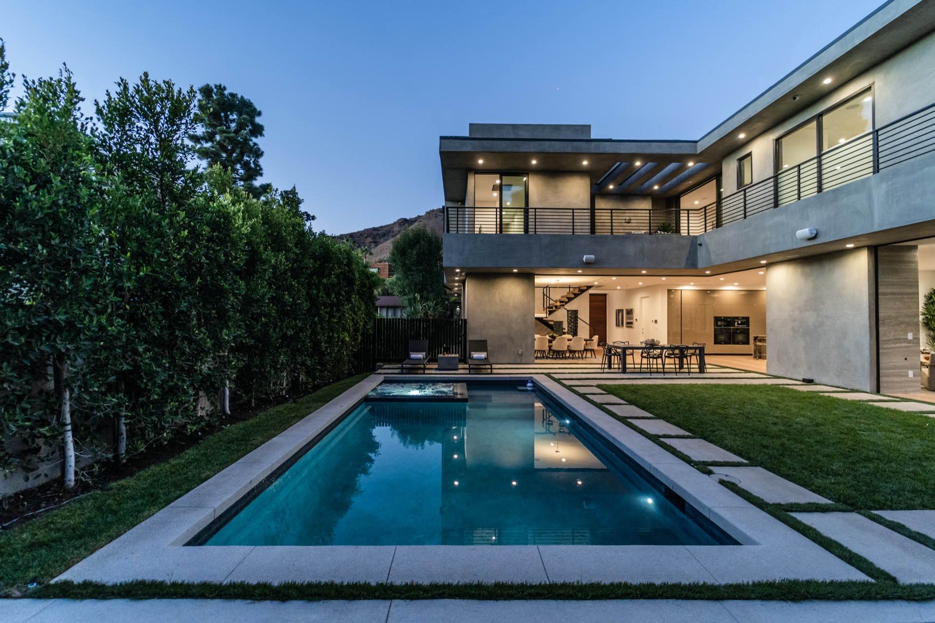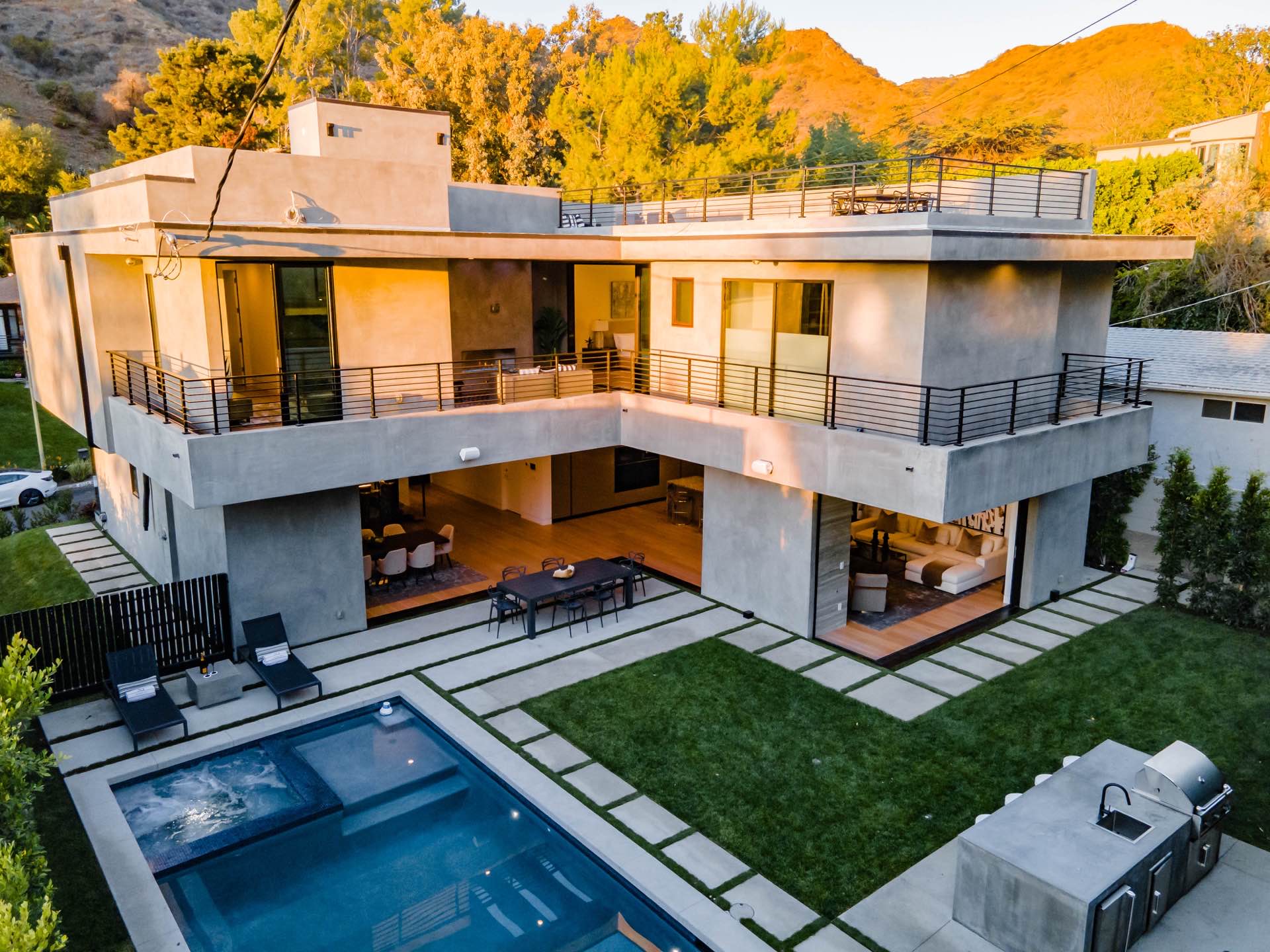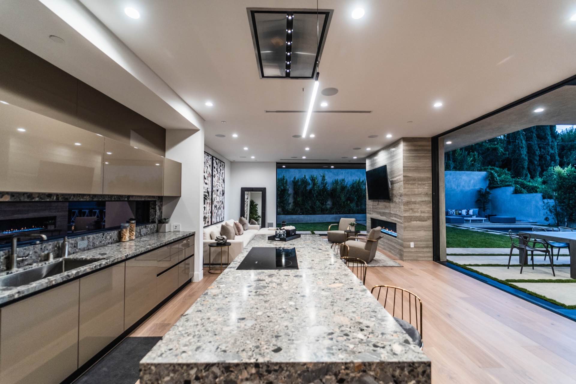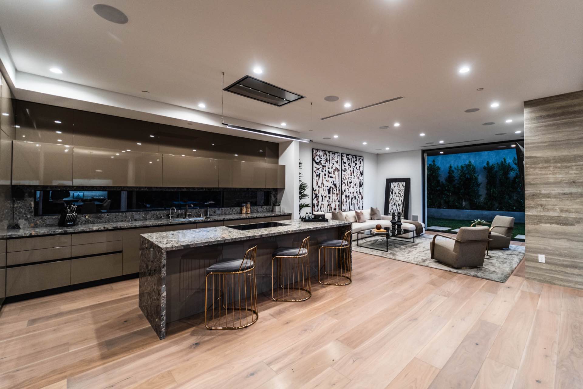 Lavish Sanctum in Los Feliz. Located on the best cul-de-sac street in “The Oaks” of Los Feliz, this exquisite warn modern new construction home offers an array of earthy elements including rich wood and natural stone finishes throughout. Large pivot door leads to the expansive open floor plan with wide plank Walnut floors, 1st floor features a bar sided dining room, powder room, a guest suite and Scavolini kitchen boasting world-class Miele appliances and a large center island overlooking the expansive living room with retractable floor-to-ceiling glass doors that open to a lavish backyard with an outdoor kitchen and a sprawling pool & spa. Floating stairs lead to the spa-inspired primary suite, 2 additional en-suites, family quarter & a laundry room. On top, an entertainer’s dream rooftop deck with panoramic views & a fire pit. This smart home includes high-end media & security apps, multi-zone climate control & a 2 car garage.