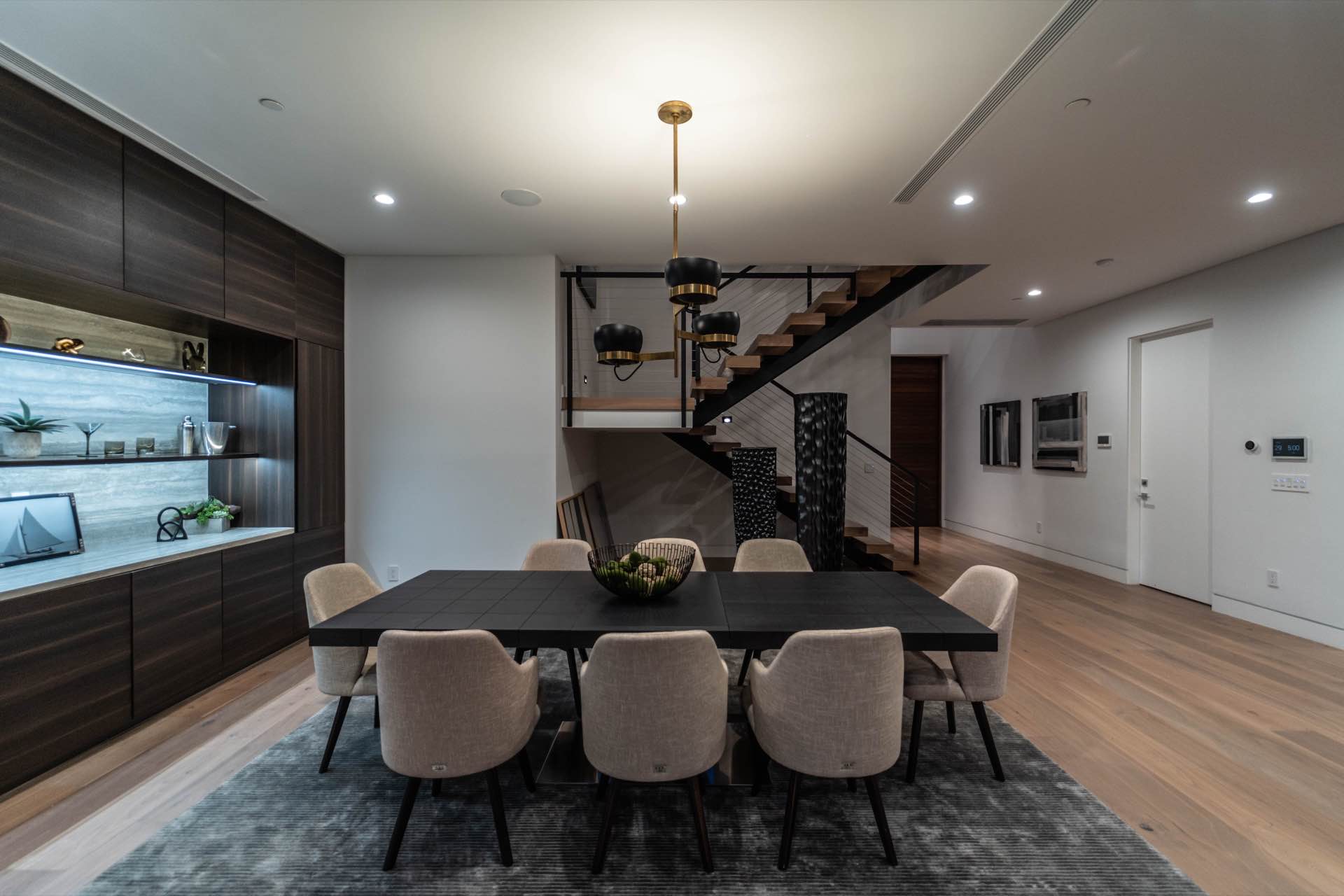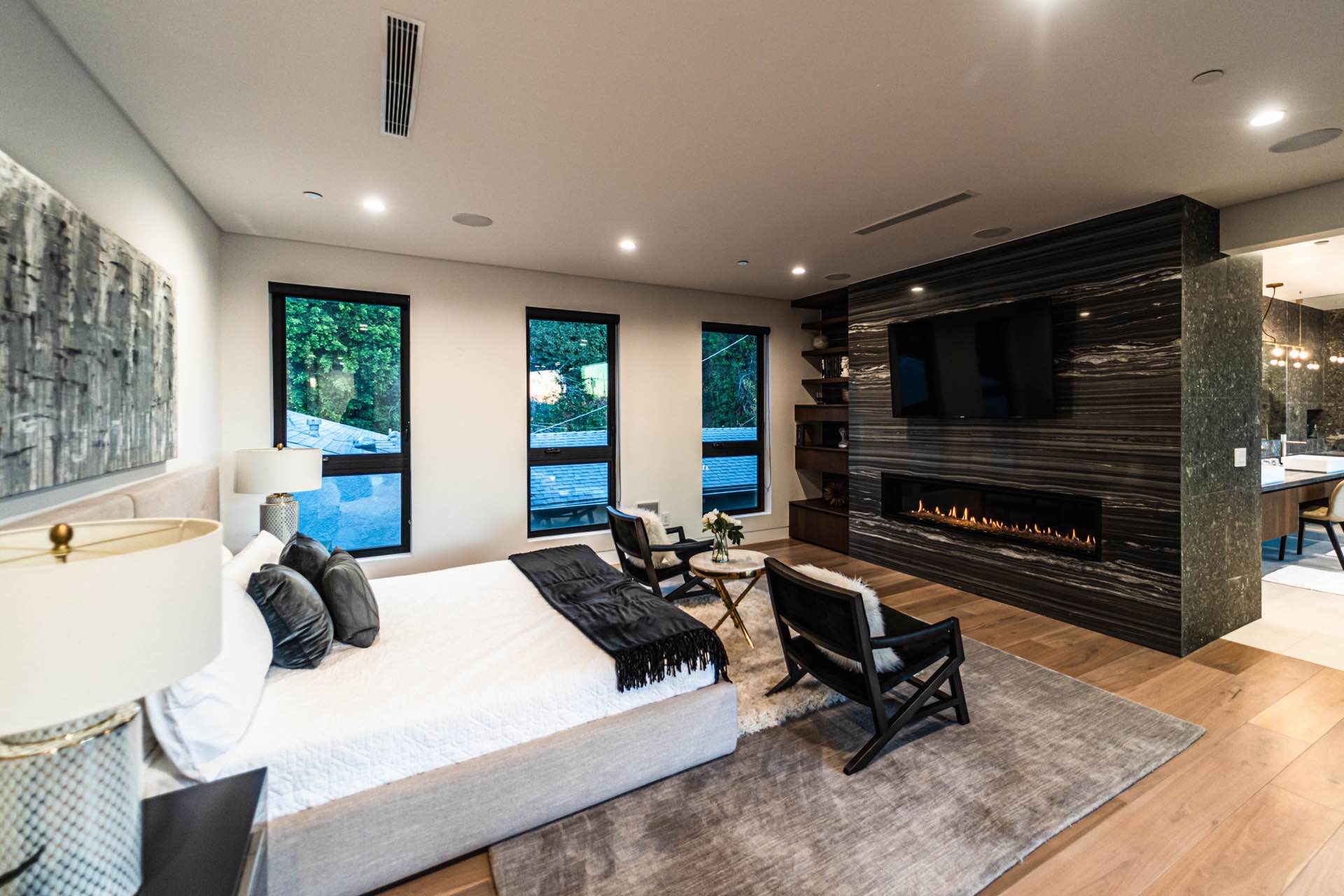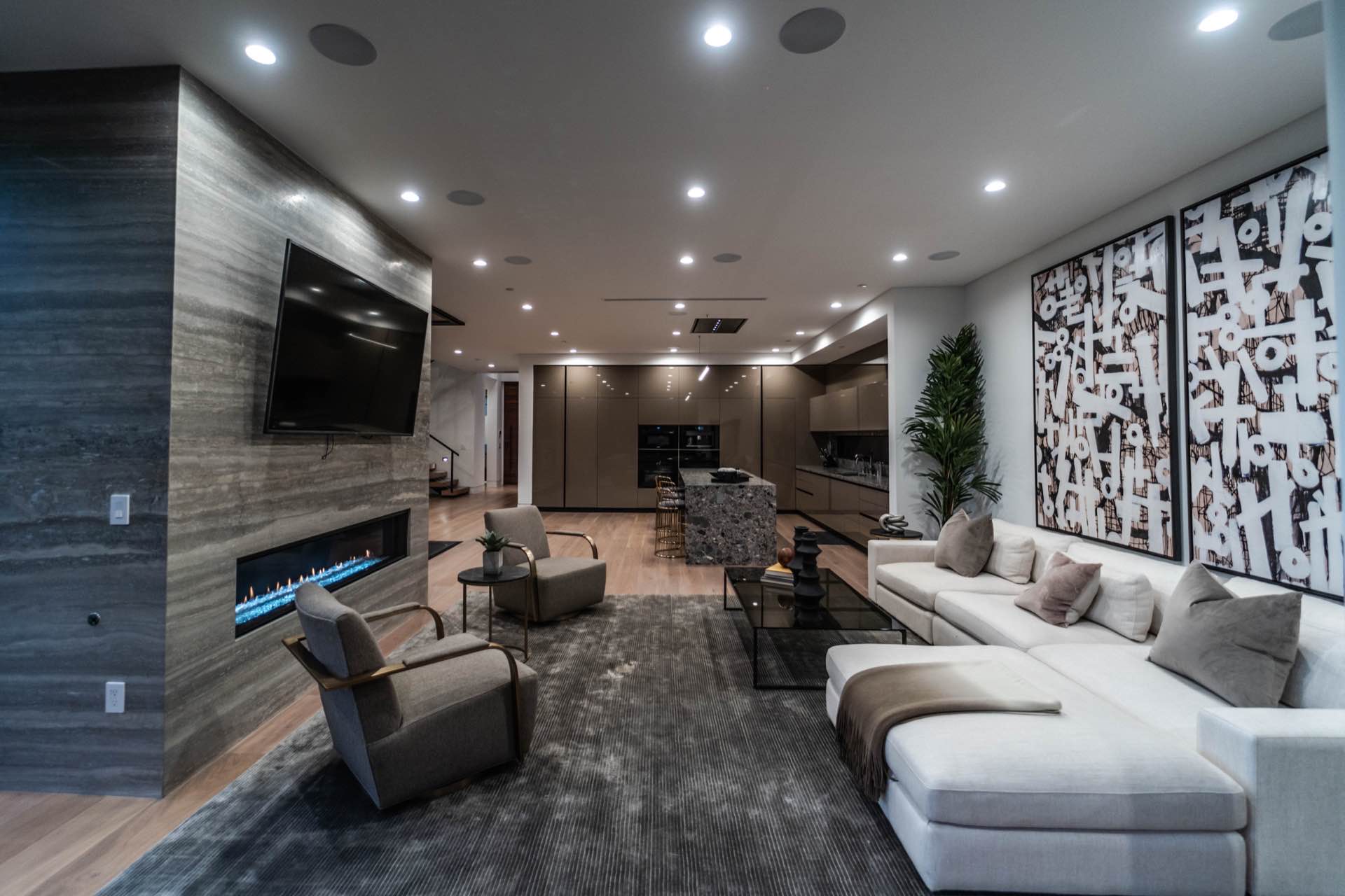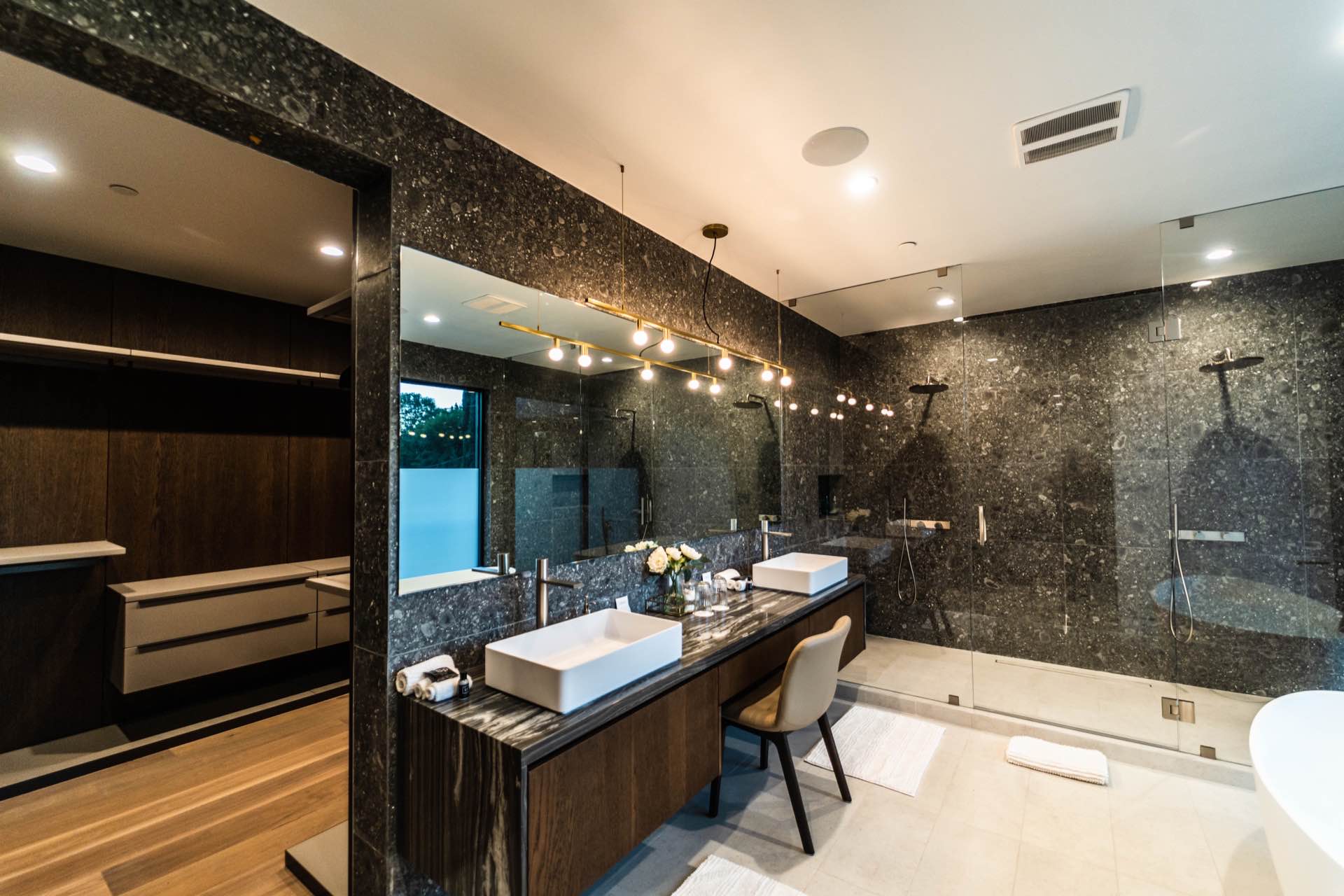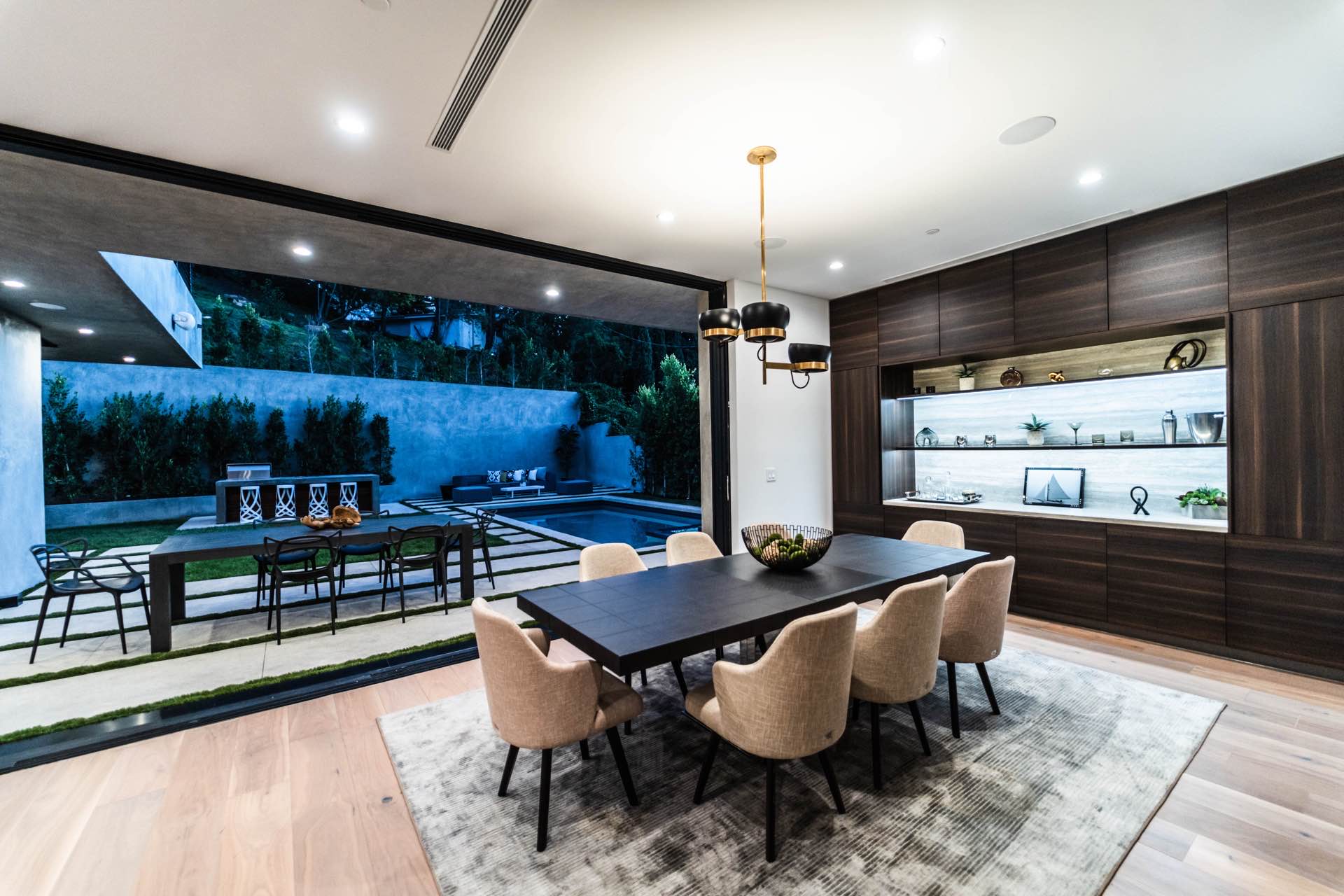 Lavish Sanctum in Los Feliz. Located on the best cul-de-sac street in “The Oaks” of Los Feliz, this exquisite warn modern new construction home offers an array of earthy elements including rich wood and natural stone finishes throughout. Large pivot door leads to the expansive open floor plan with wide plank Walnut floors, 1st floor features a bar sided dining room, powder room, a guest suite and Scavolini kitchen boasting world-class Miele appliances and a large center island overlooking the expansive living room with retractable floor-to-ceiling glass doors that open to a lavish backyard with an outdoor kitchen and a sprawling pool & spa. Floating stairs lead to the spa-inspired primary suite, 2 additional en-suites, family quarter & a laundry room. On top, an entertainer’s dream rooftop deck with panoramic views & a fire pit. This smart home includes high-end media & security apps, multi-zone climate control & a 2 car garage.