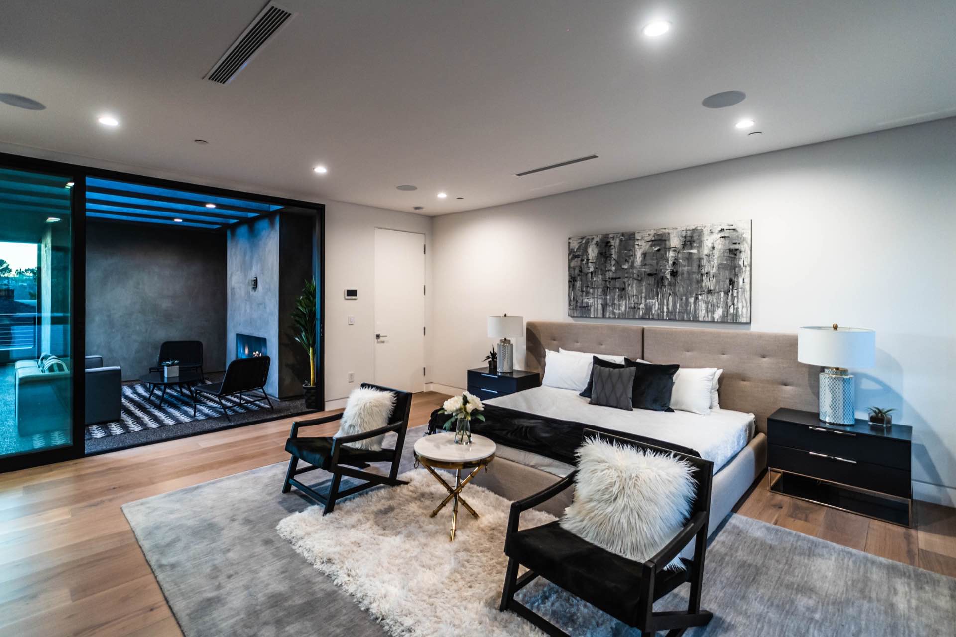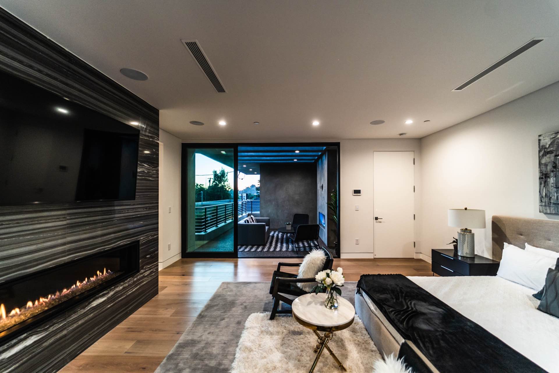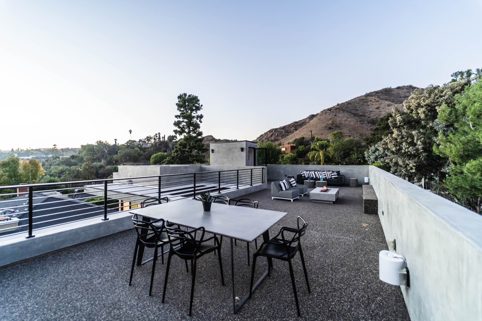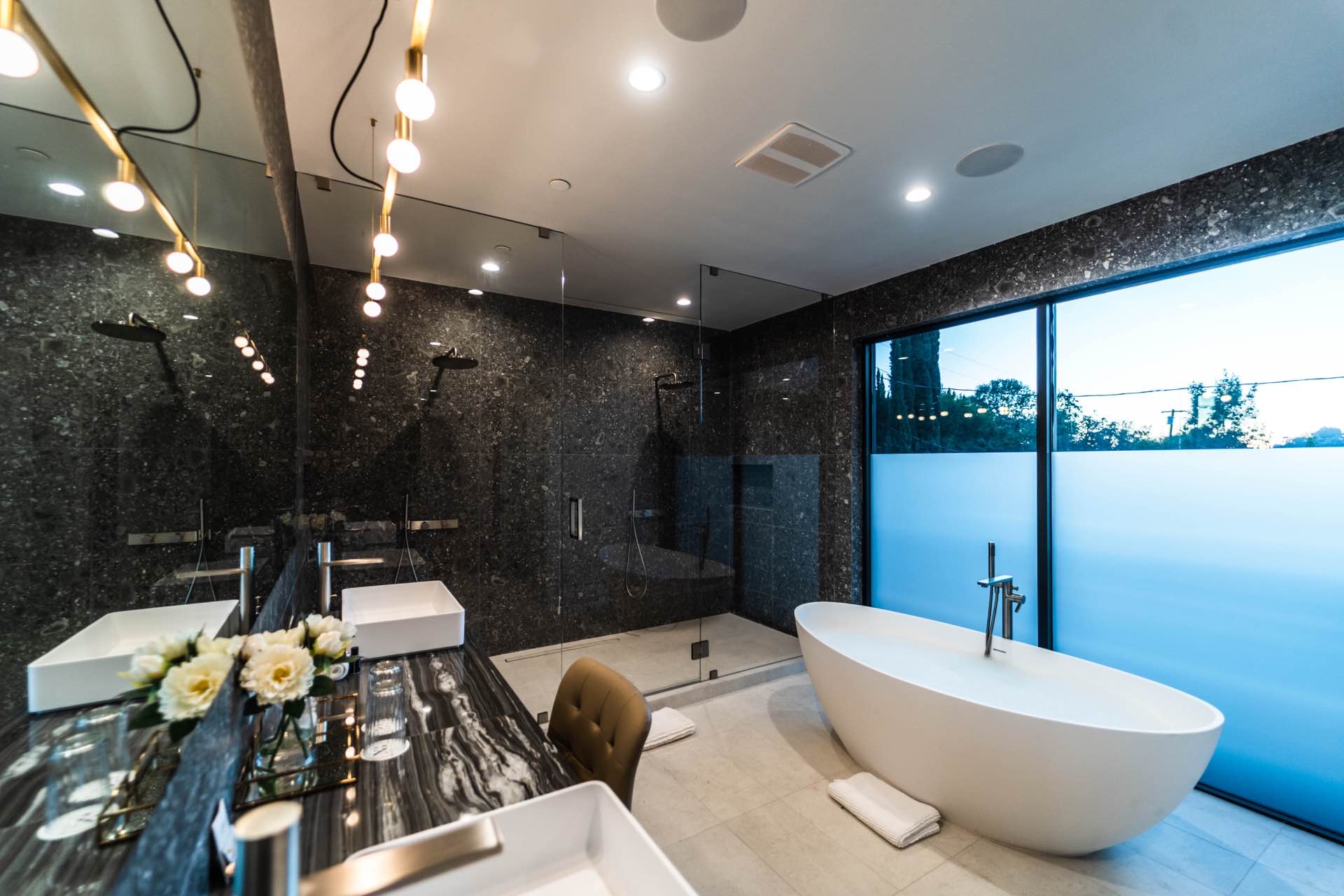 Lavish Sanctum in Los Feliz. Located on the best cul-de-sac street in “The Oaks” of Los Feliz, this exquisite warn modern new construction home offers an array of earthy elements including rich wood and natural stone finishes throughout. Large pivot door leads to the expansive open floor plan with wide plank Walnut floors, 1st floor features a bar sided dining room, powder room, a guest suite and Scavolini kitchen boasting world-class Miele appliances and a large center island overlooking the expansive living room with retractable floor-to-ceiling glass doors that open to a lavish backyard with an outdoor kitchen and a sprawling pool & spa. Floating stairs lead to the spa-inspired primary suite, 2 additional en-suites, family quarter & a laundry room. On top, an entertainer’s dream rooftop deck with panoramic views & a fire pit. This smart home includes high-end media & security apps, multi-zone climate control & a 2 car garage.