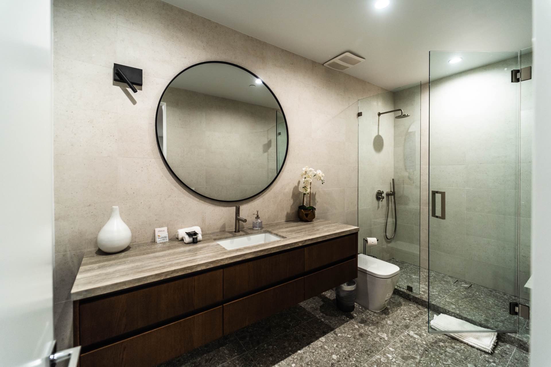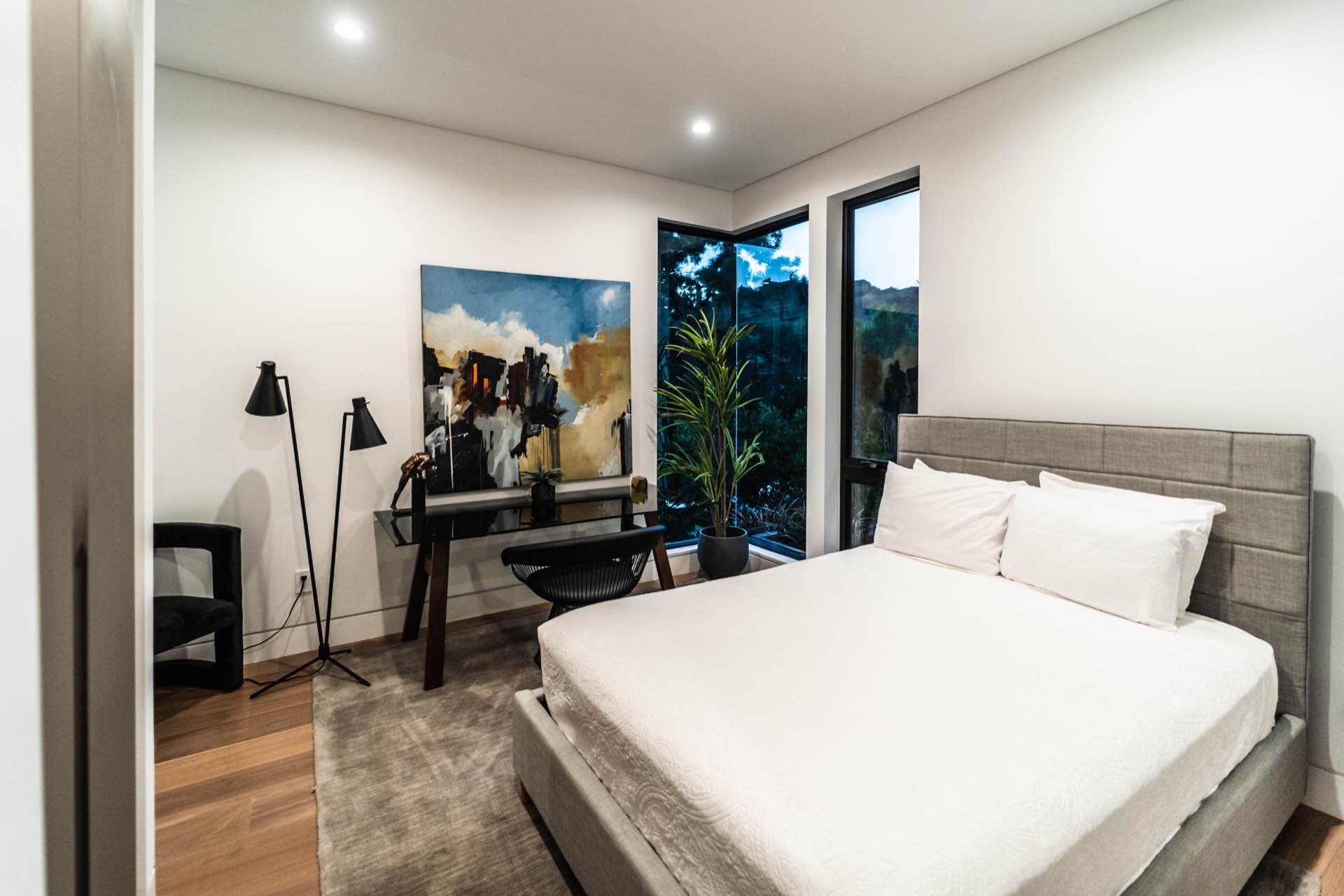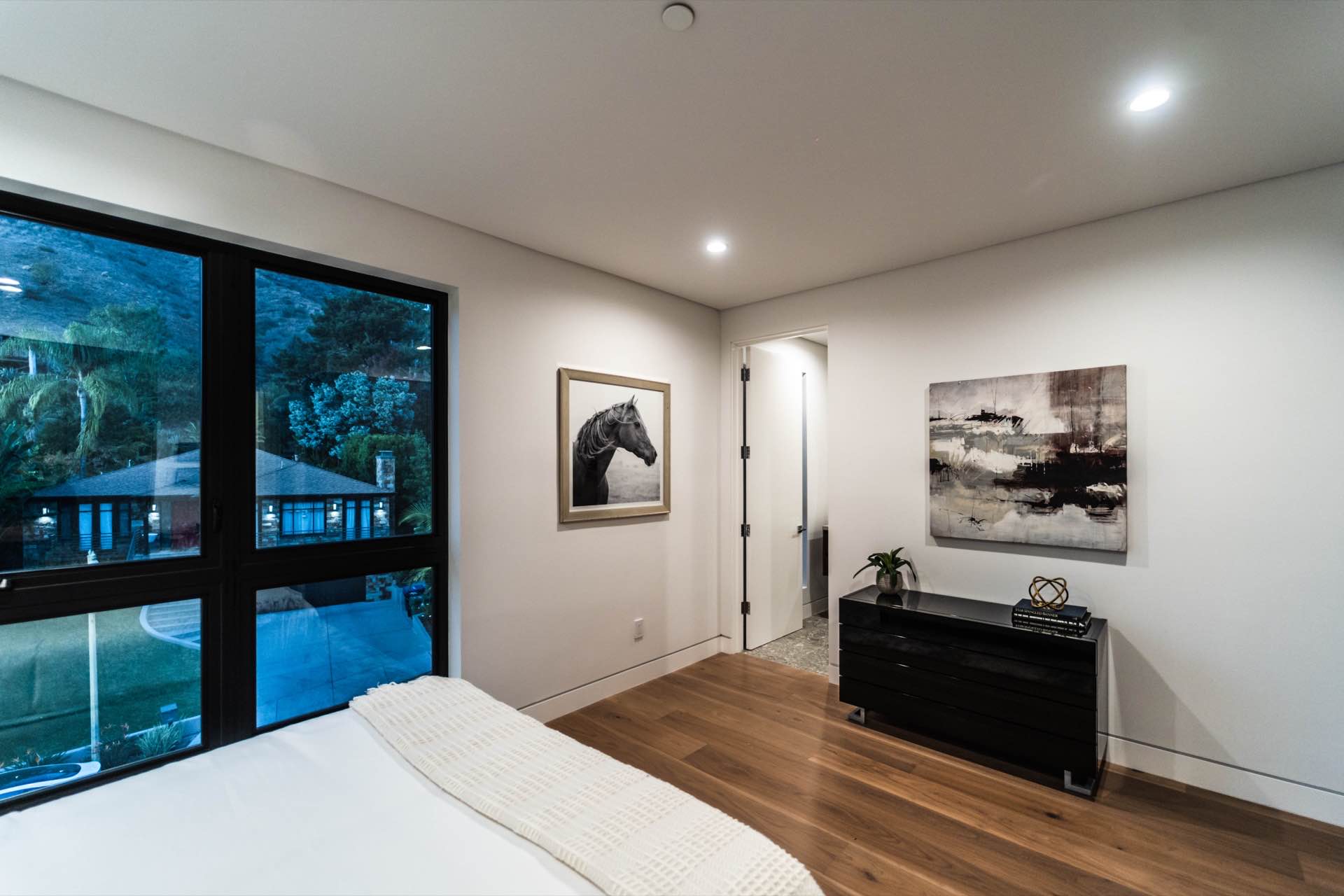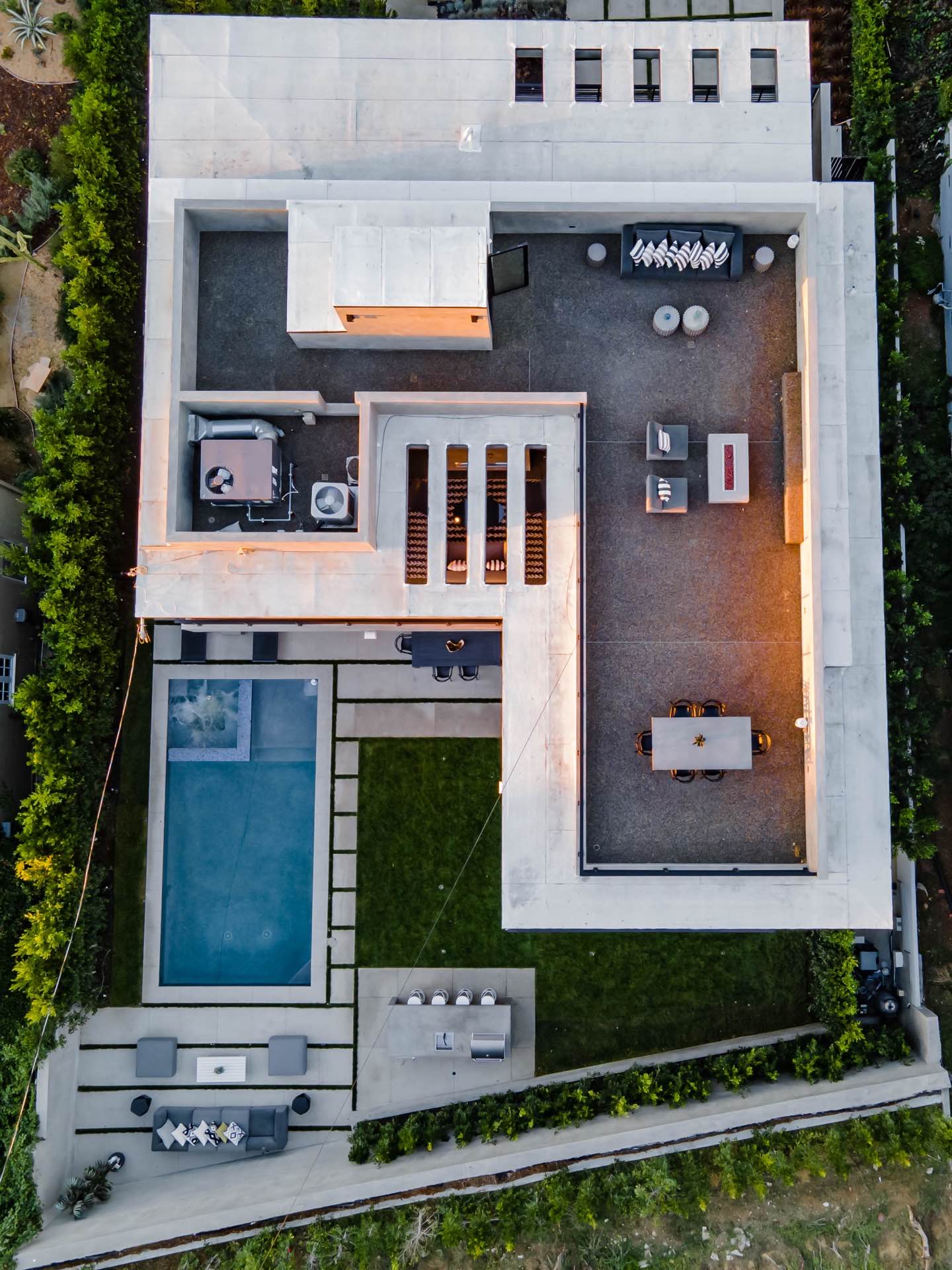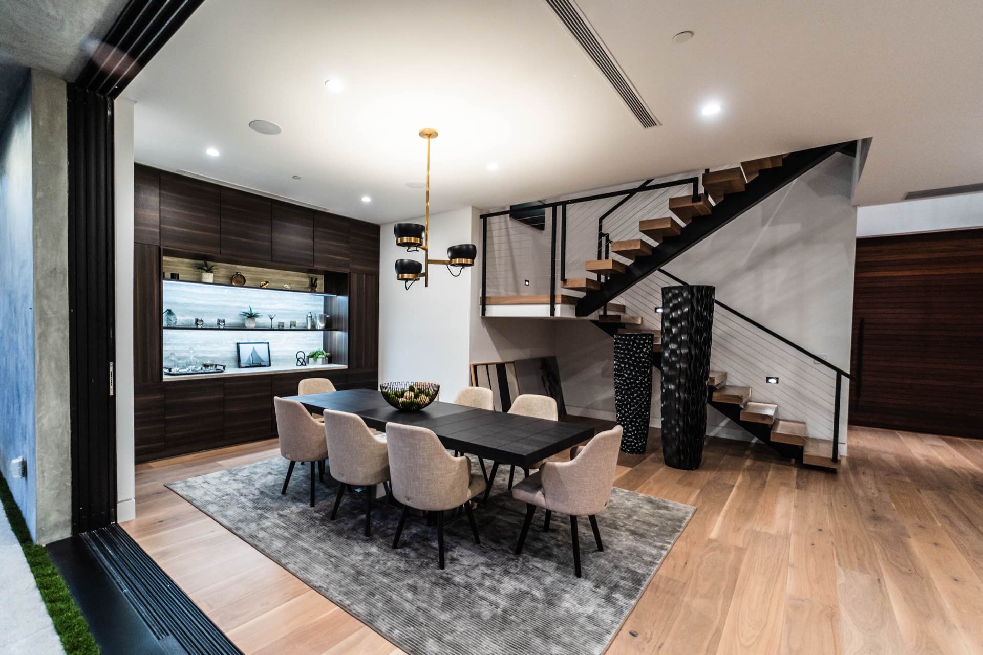 Lavish Sanctum in Los Feliz. Located on the best cul-de-sac street in “The Oaks” of Los Feliz, this exquisite warn modern new construction home offers an array of earthy elements including rich wood and natural stone finishes throughout. Large pivot door leads to the expansive open floor plan with wide plank Walnut floors, 1st floor features a bar sided dining room, powder room, a guest suite and Scavolini kitchen boasting world-class Miele appliances and a large center island overlooking the expansive living room with retractable floor-to-ceiling glass doors that open to a lavish backyard with an outdoor kitchen and a sprawling pool & spa. Floating stairs lead to the spa-inspired primary suite, 2 additional en-suites, family quarter & a laundry room. On top, an entertainer’s dream rooftop deck with panoramic views & a fire pit. This smart home includes high-end media & security apps, multi-zone climate control & a 2 car garage.