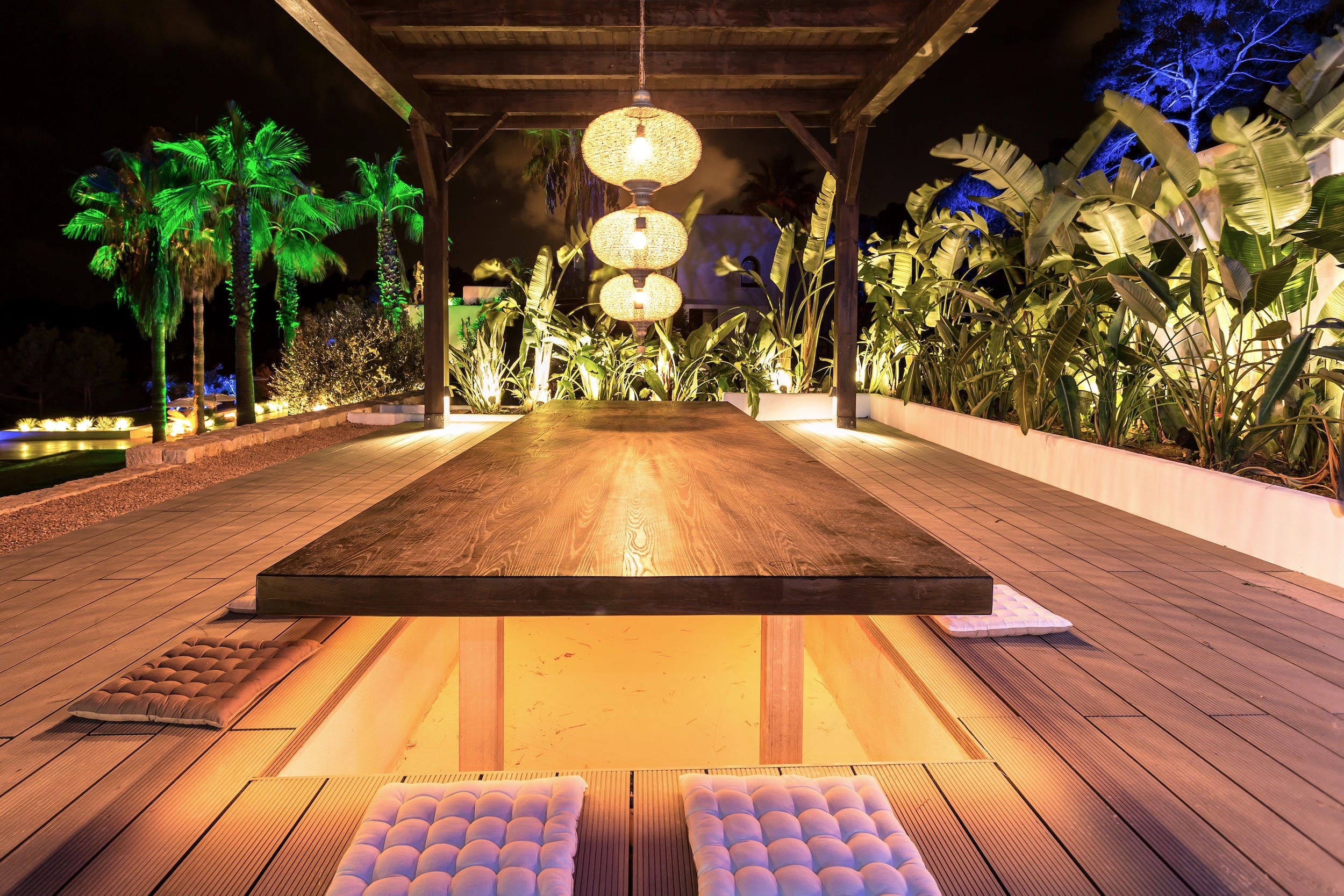 Soak up some Ibizan sunshine on a lounger by the large pool as you revel in the sparkling sea views. Or choose one of three garden chill-out areas ? by day, peaceful places to enjoy the sunshine and, by night, sophisticated chill-out spaces under the stars.