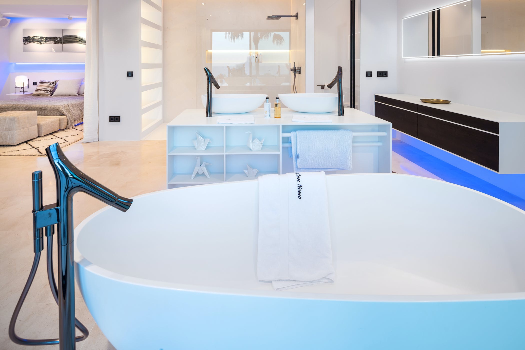 Palm-filled private gardens imbue a secluded, retreat-like feel to Times Legend’s secure, private plot. It feels a million miles from the hustle and bustle of Ibiza Town, yet is close enough to indulge whenever your heart desires.