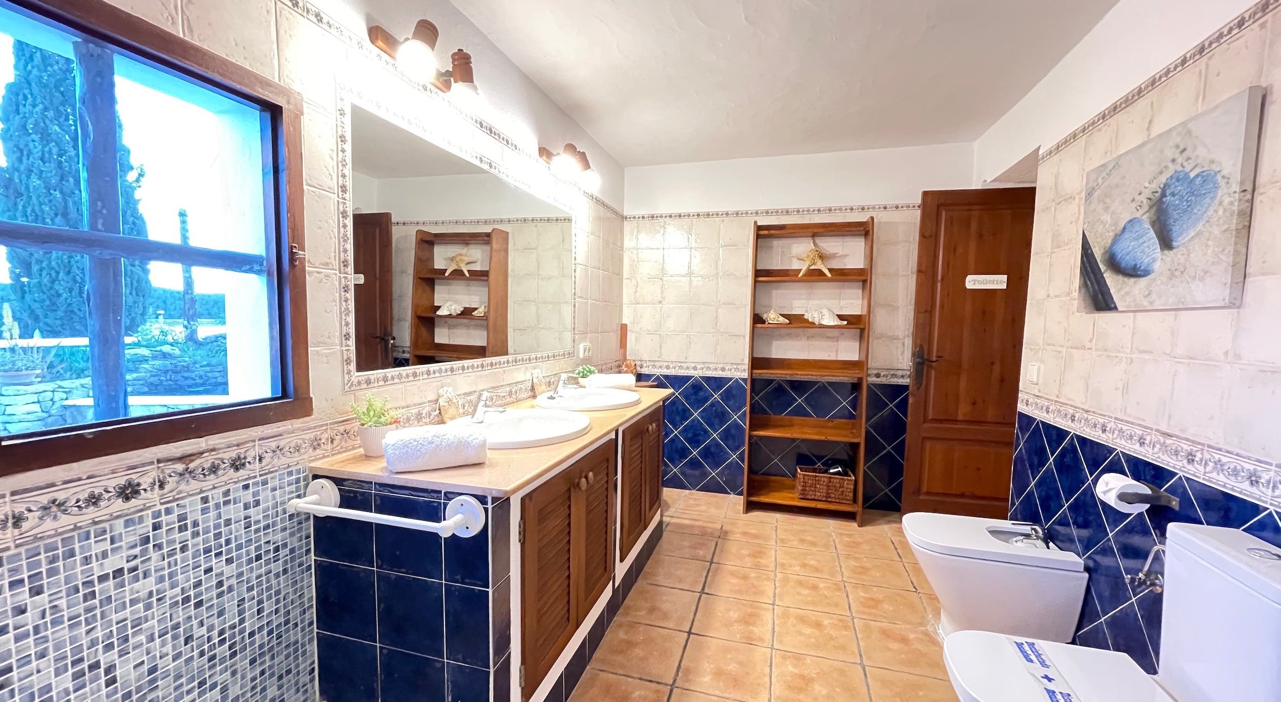 Ground Floor – Double bed (160×200), air conditioning, TV, shared bathroom with double shower.