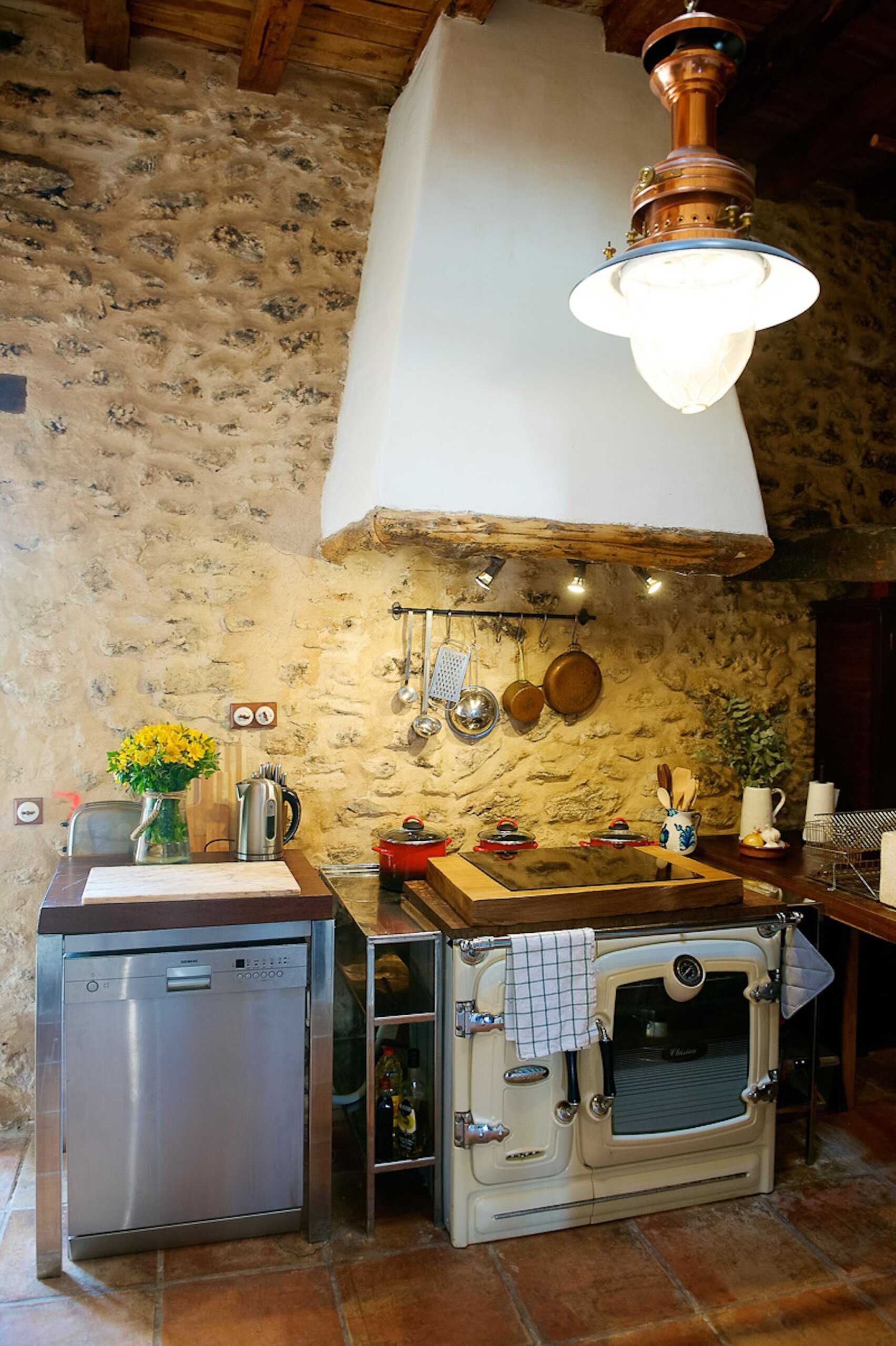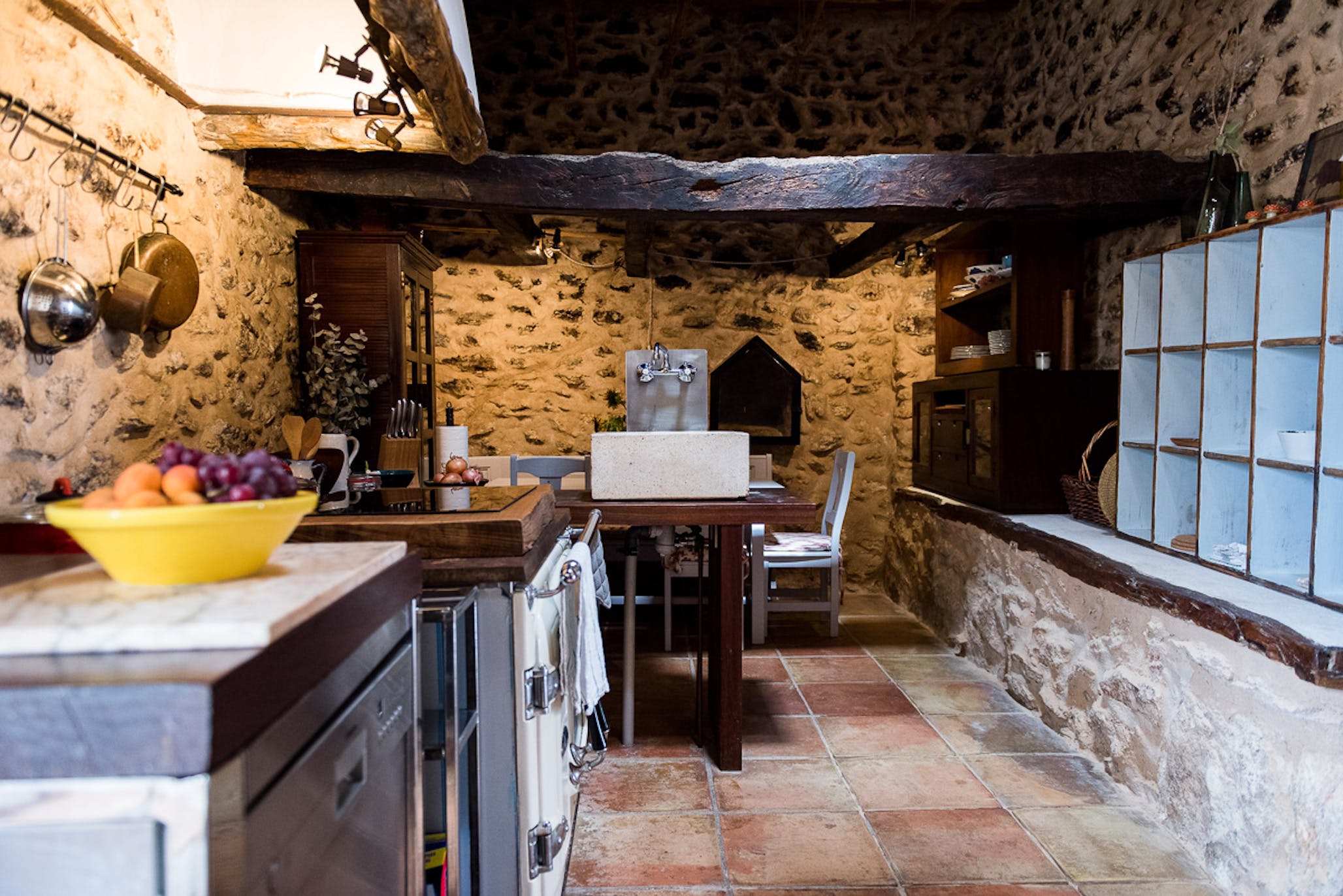 Kitchen two, a cozy family kitchen, is located in the main house, the wood ceilings and blackened walls are testament to the centuries it has served as a kitchen.