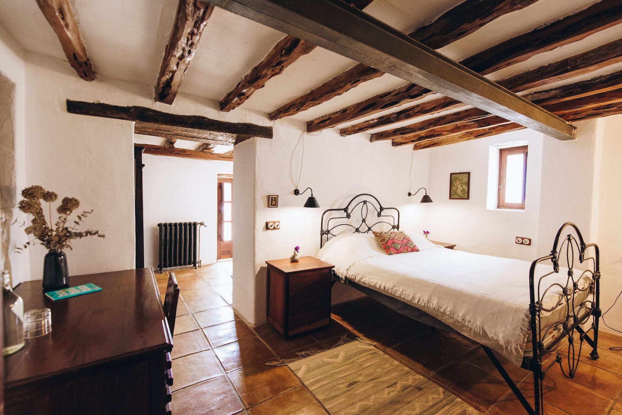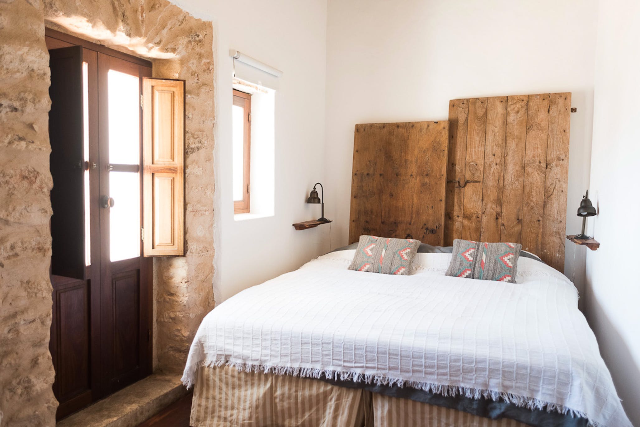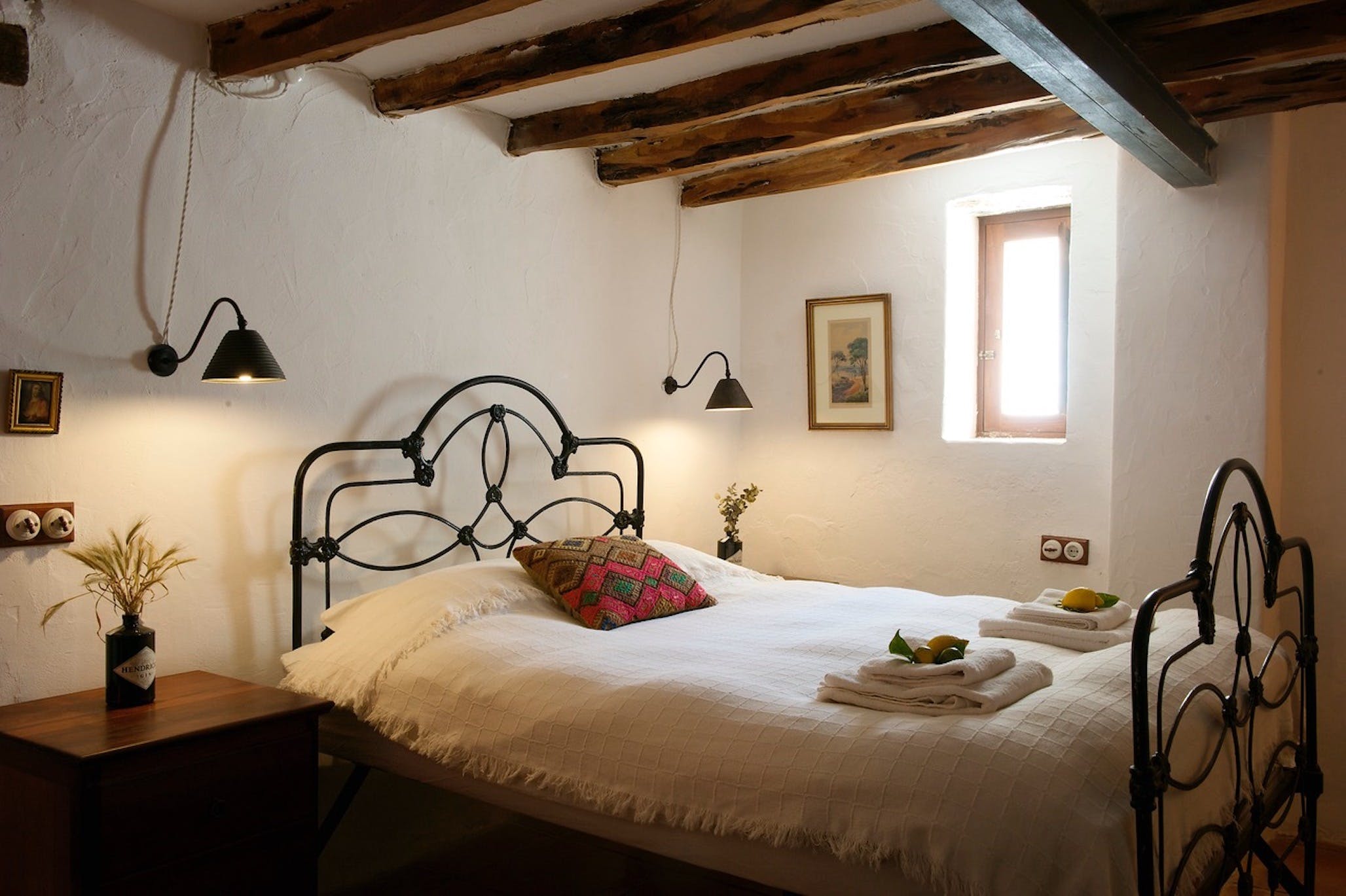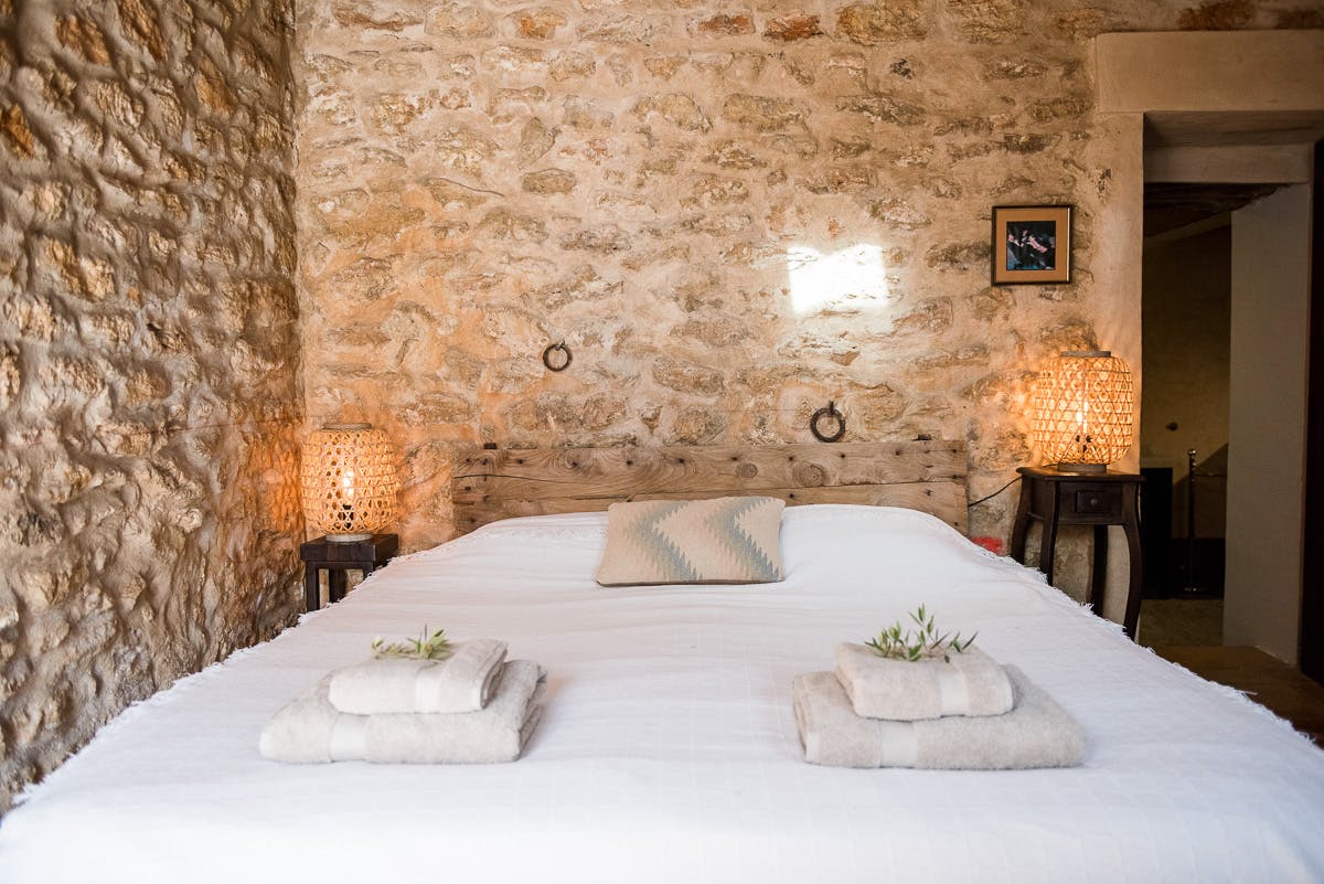 (Main house) Double bed, period features such as 19th century olive press, sitting area, fan, shared bathroom with bedroom 2. *No air conditioning.