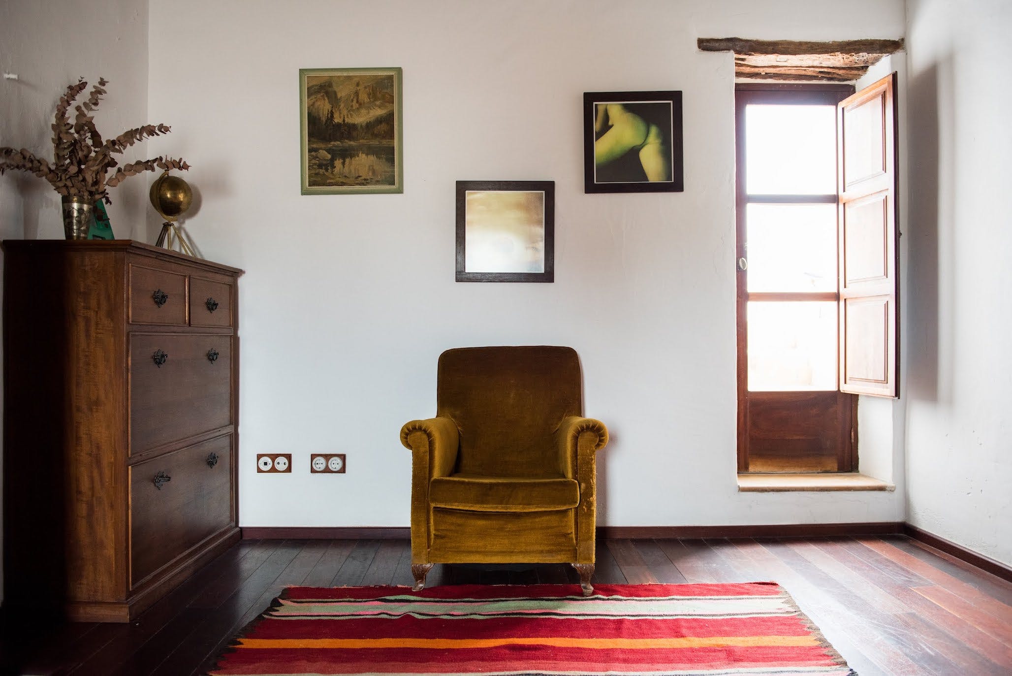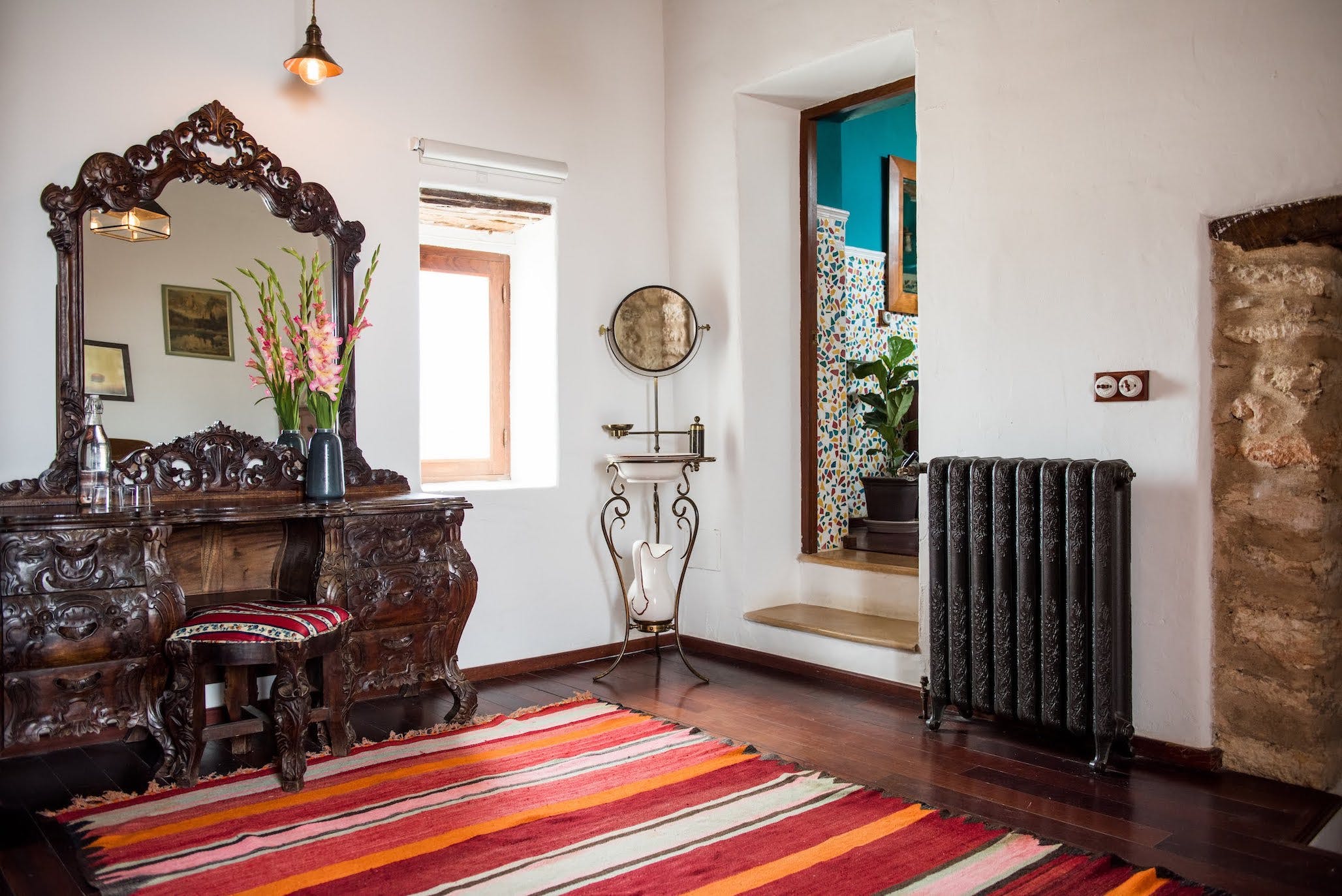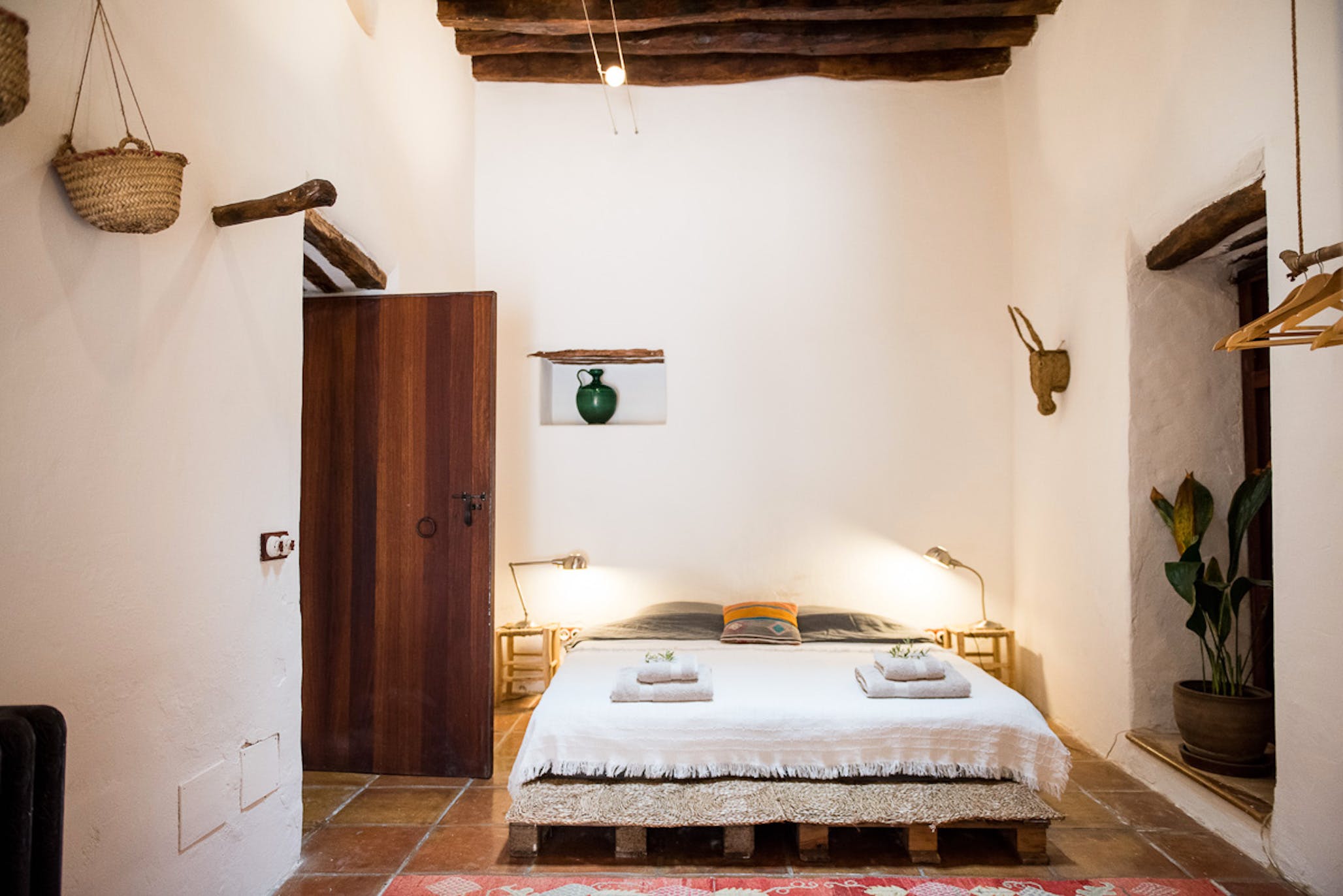 (Main house) Double bed, period features such as 19th century olive press, sitting area, fan, shared bathroom with bedroom 2. *No air conditioning.