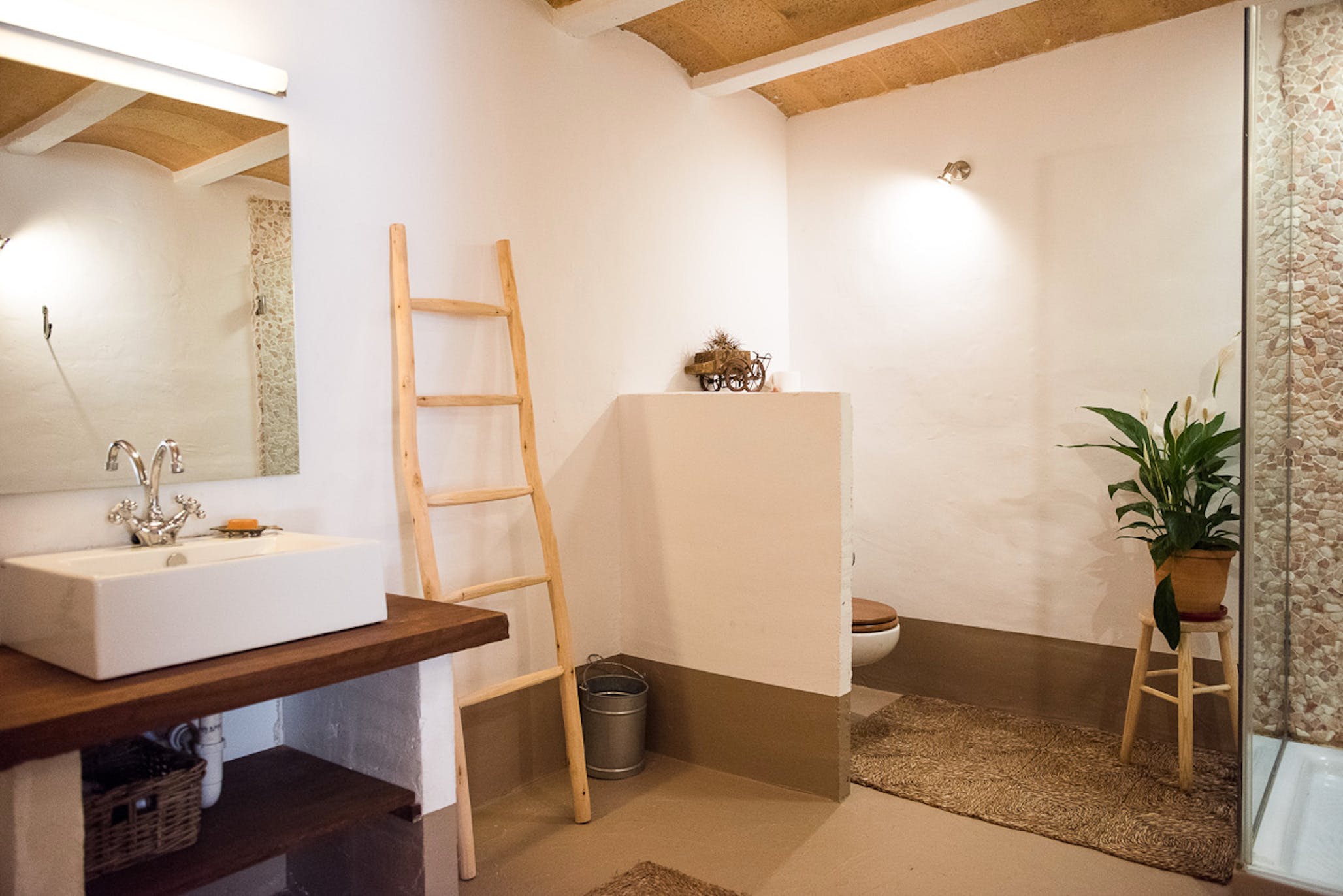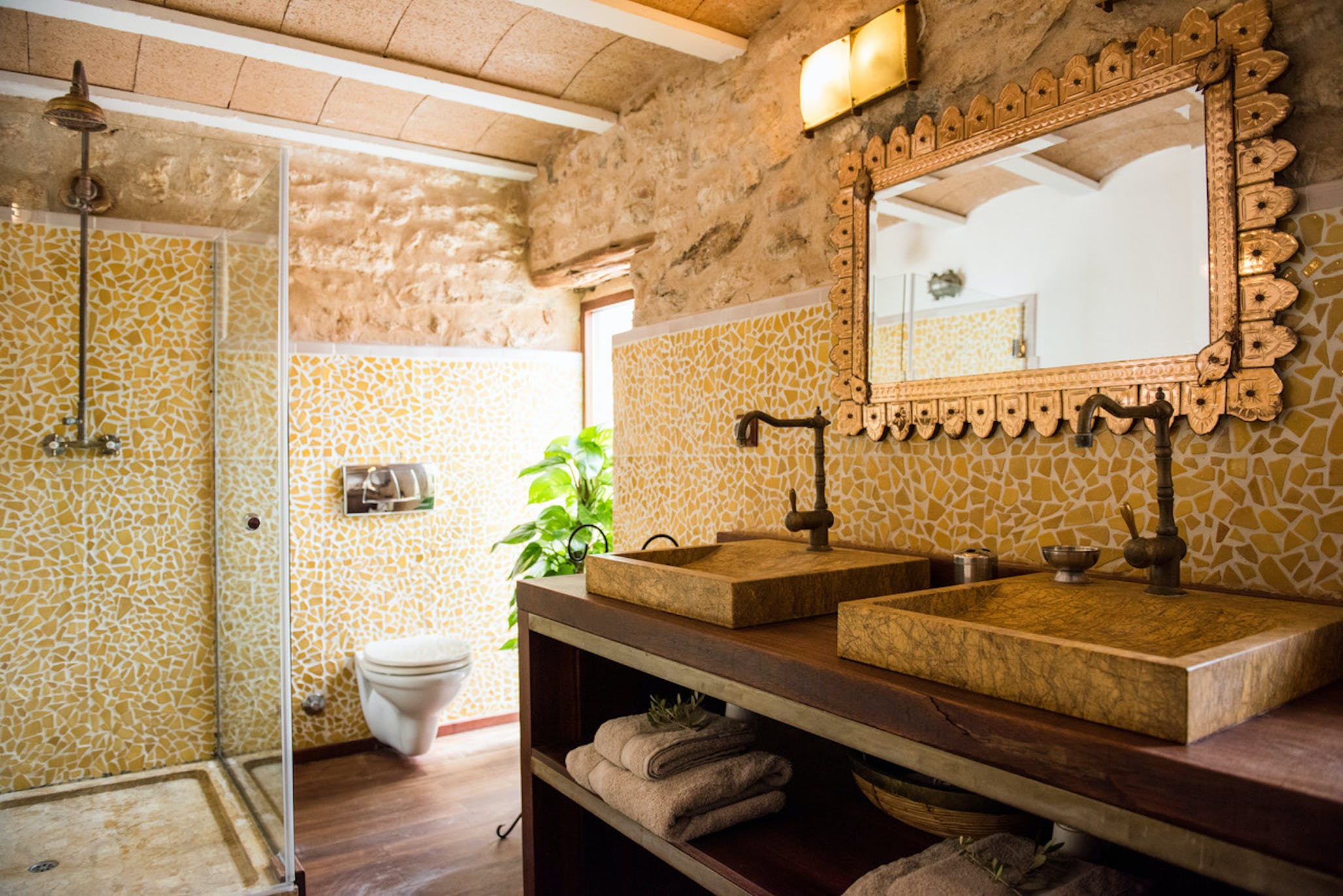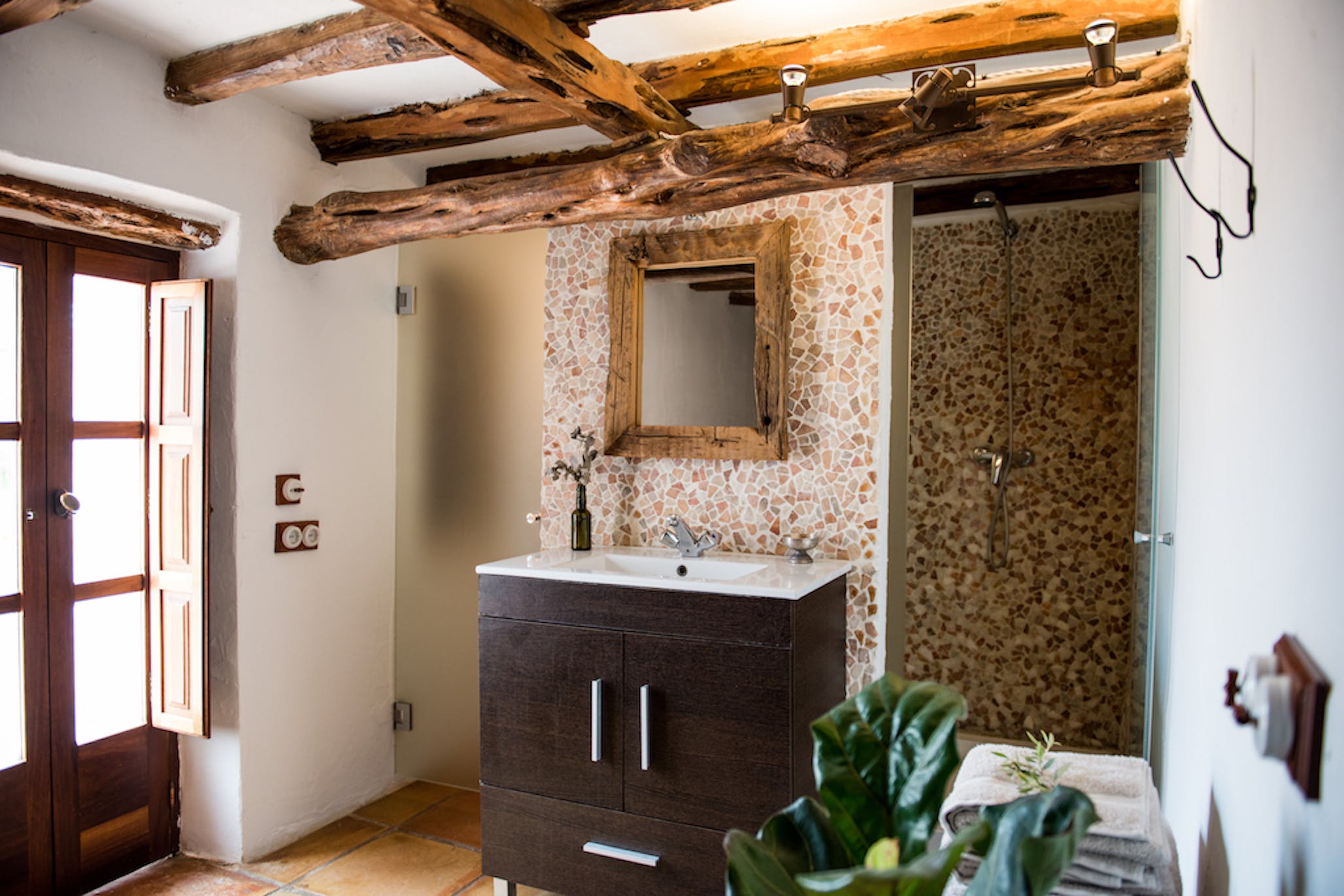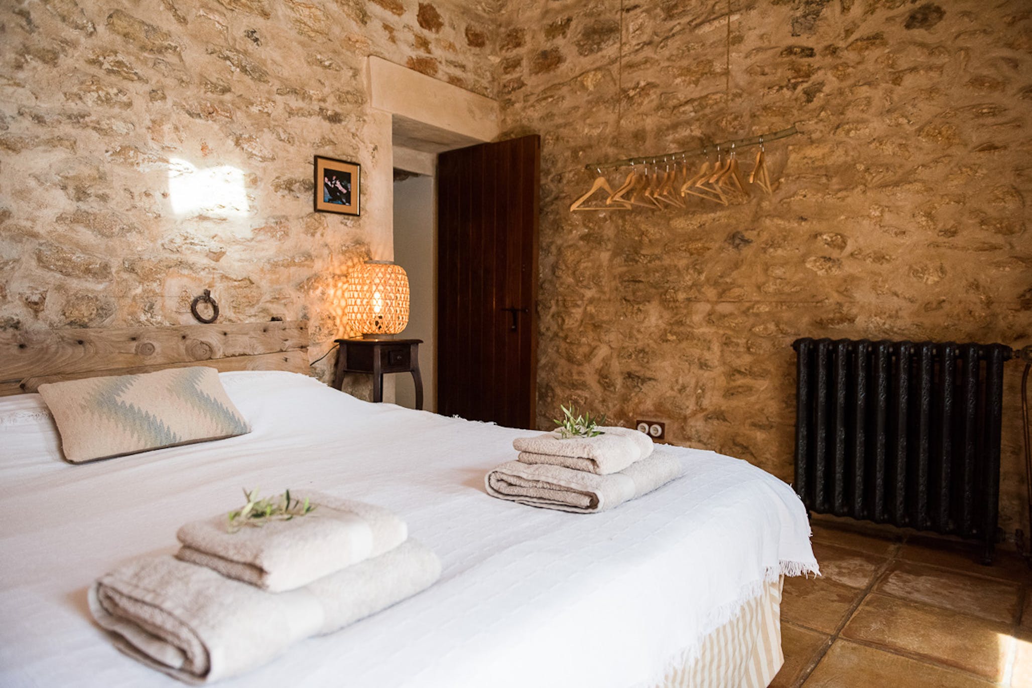 (Outside access) Double bed or two single beds, air conditioning, original stone elements, opens onto a terrace shared with bedroom 5. En suite bathroom with shower.