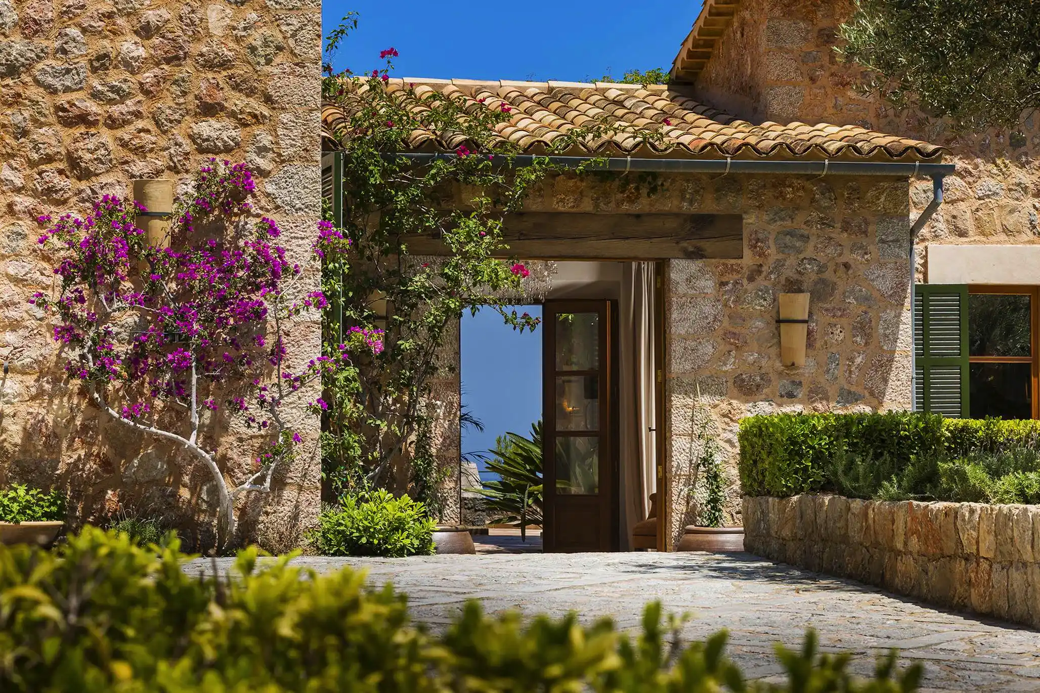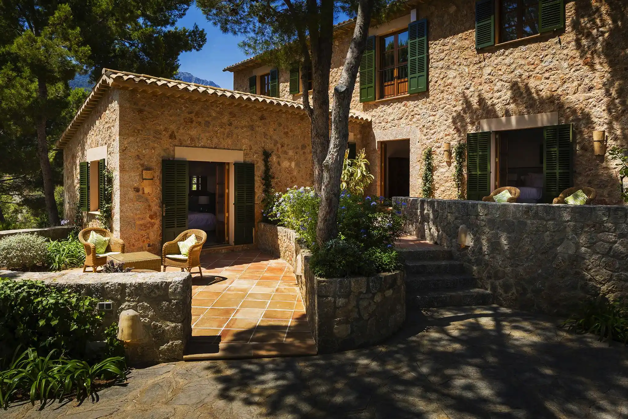 Built in traditional Mallorcan style, with exposed beam ceilings and terracotta tiled floors, it has been sympathetically built into the landscape and has panoramic sea and mountain views. The property has a private heated swimming pool (15 x 6 metres), kitchen, living room and dining area and comfortably sleeps 10 adults in 5 en-suite bedrooms.