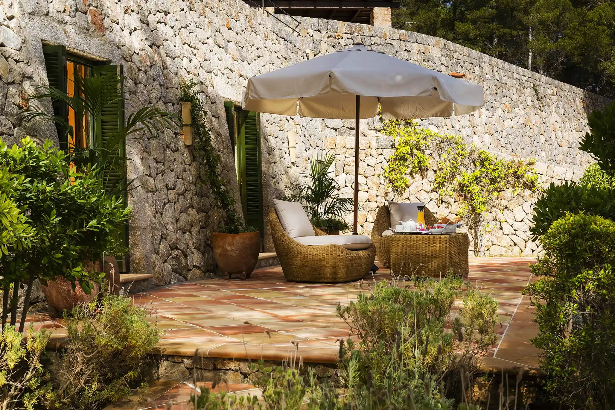 The rooms are arranged over three levels and all feature en-suite bathrooms, Bose speakers and a complimentary selection of toiletries. Each room has its own terraced seating area.