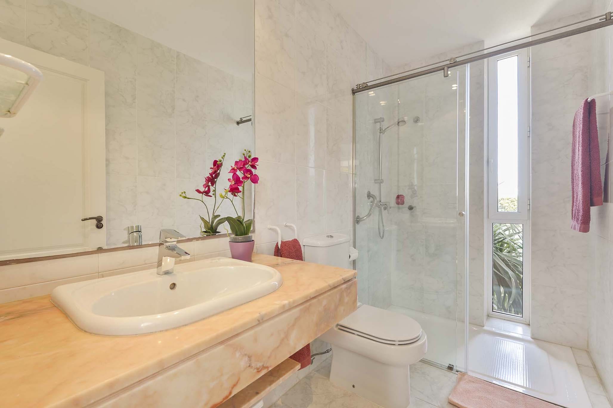 There is also a large double bedroom with en-suite bathroom on the first floor. The rest of the four double bedrooms, including the master suite, are located on the wide staircase on the upper floor. The master suite has access to the upper terrace and has a large bathroom with shower and whirlpool bath. The other three bedrooms share the family bathroom.