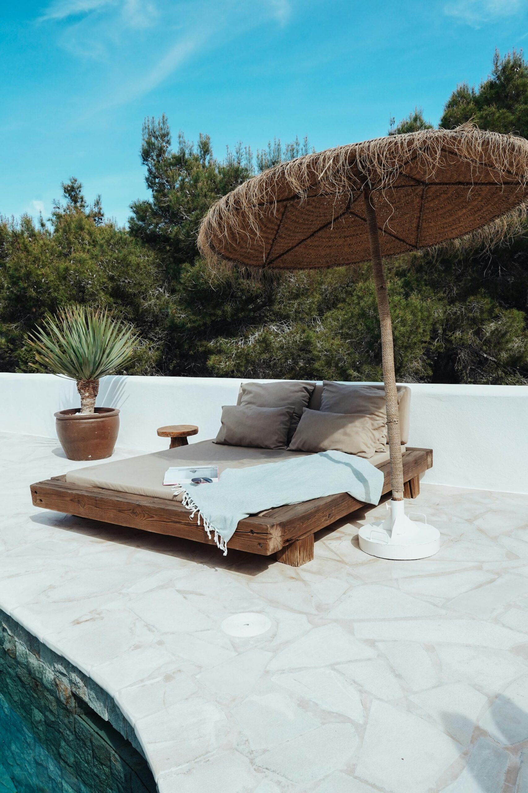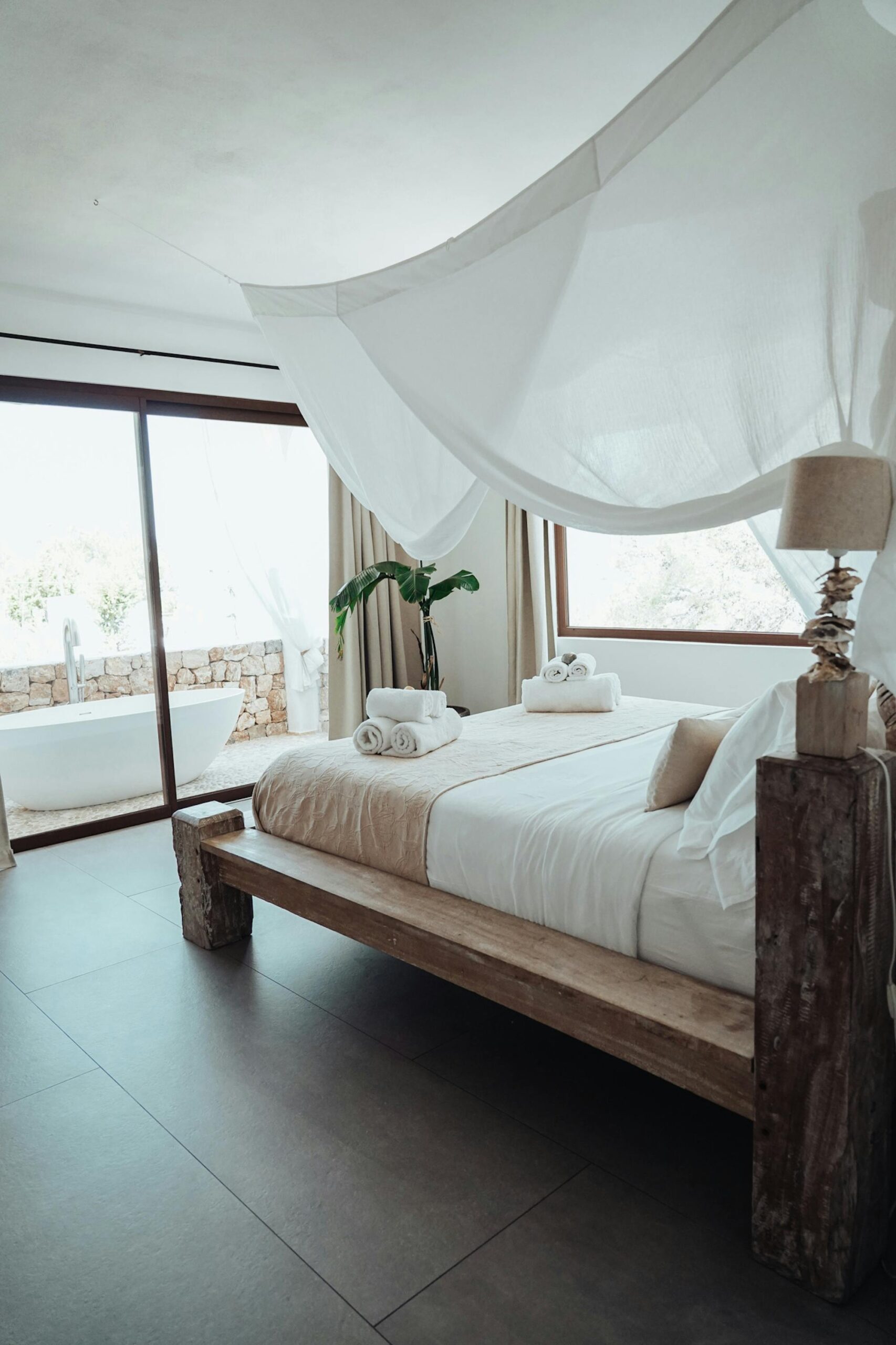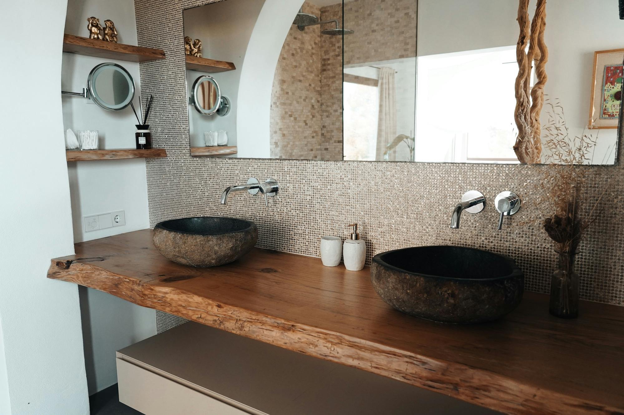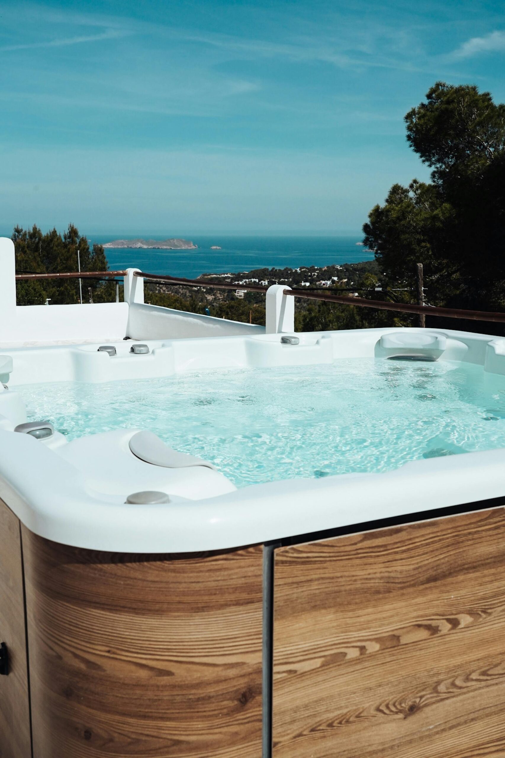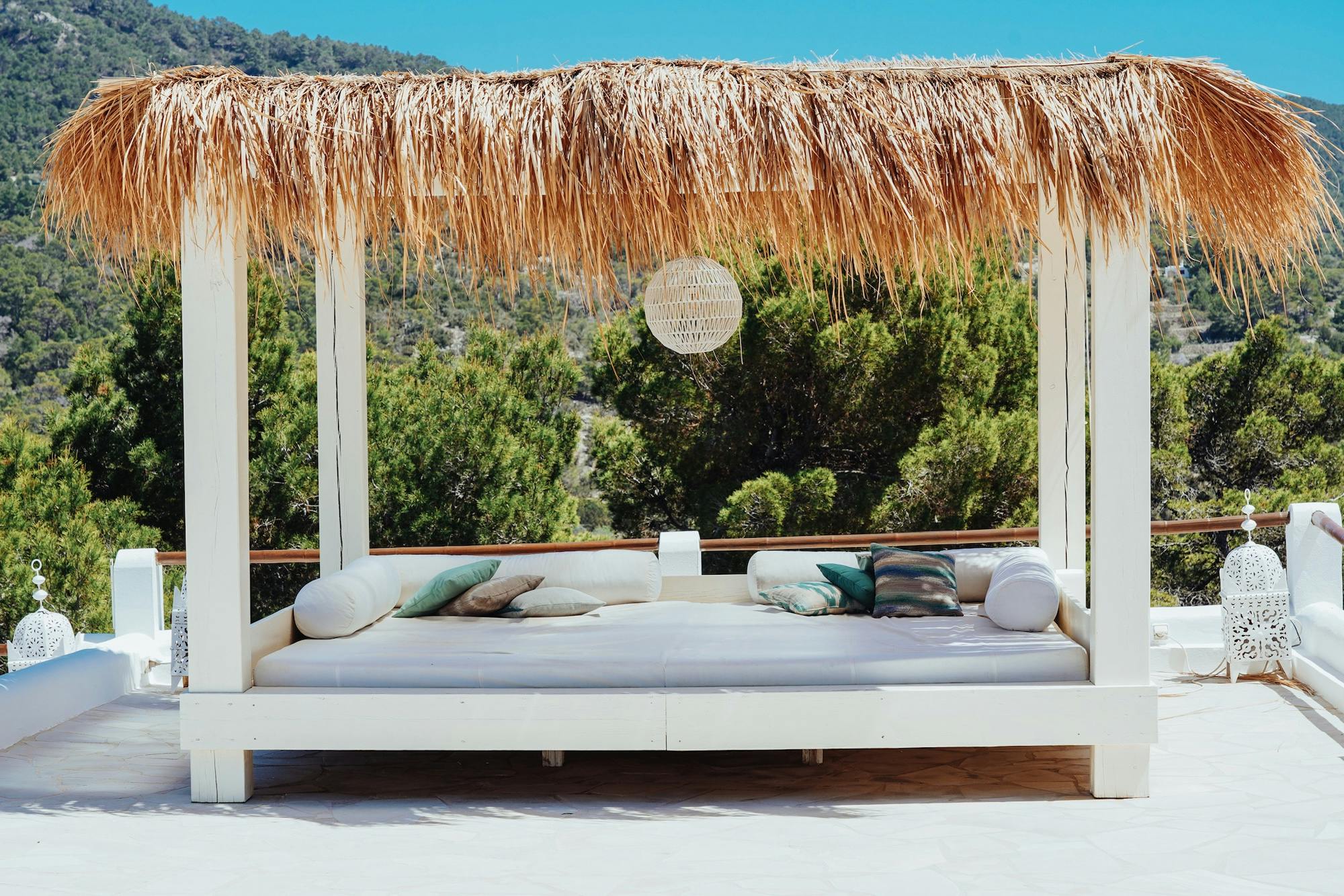 Zarza Dorada has three luxury bathrooms with wonderful rain showers. The sabina wooden bathroom furniture, including Balinese washbasins, provide the mix of Bali and Ibiza that you will find throughout the whole house. The master bedroom also offers its guests a double rain shower and an outdoor bath. Take a bath or shower in the outdoors and enjoy the wonderful warm water with a phenomenal view.