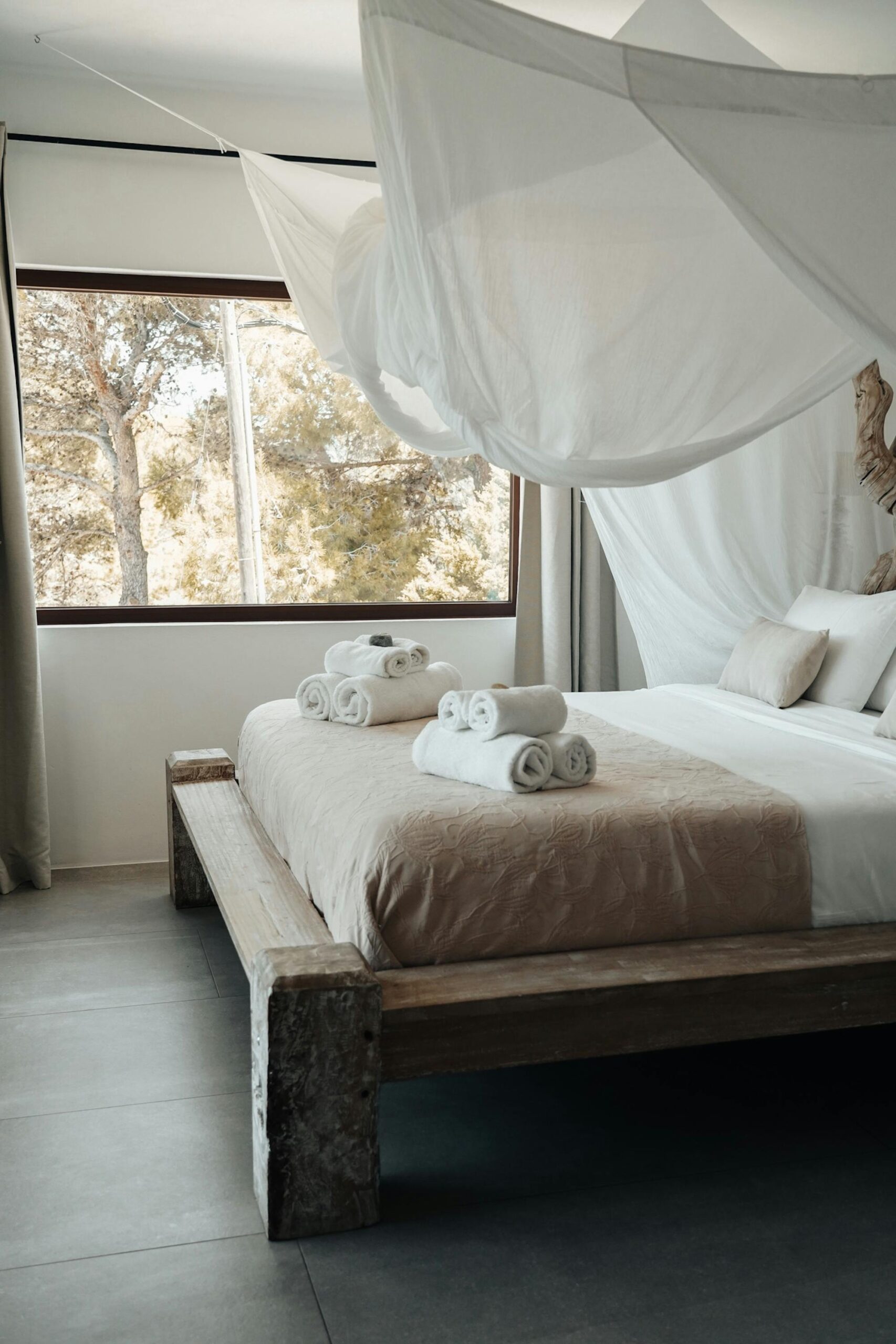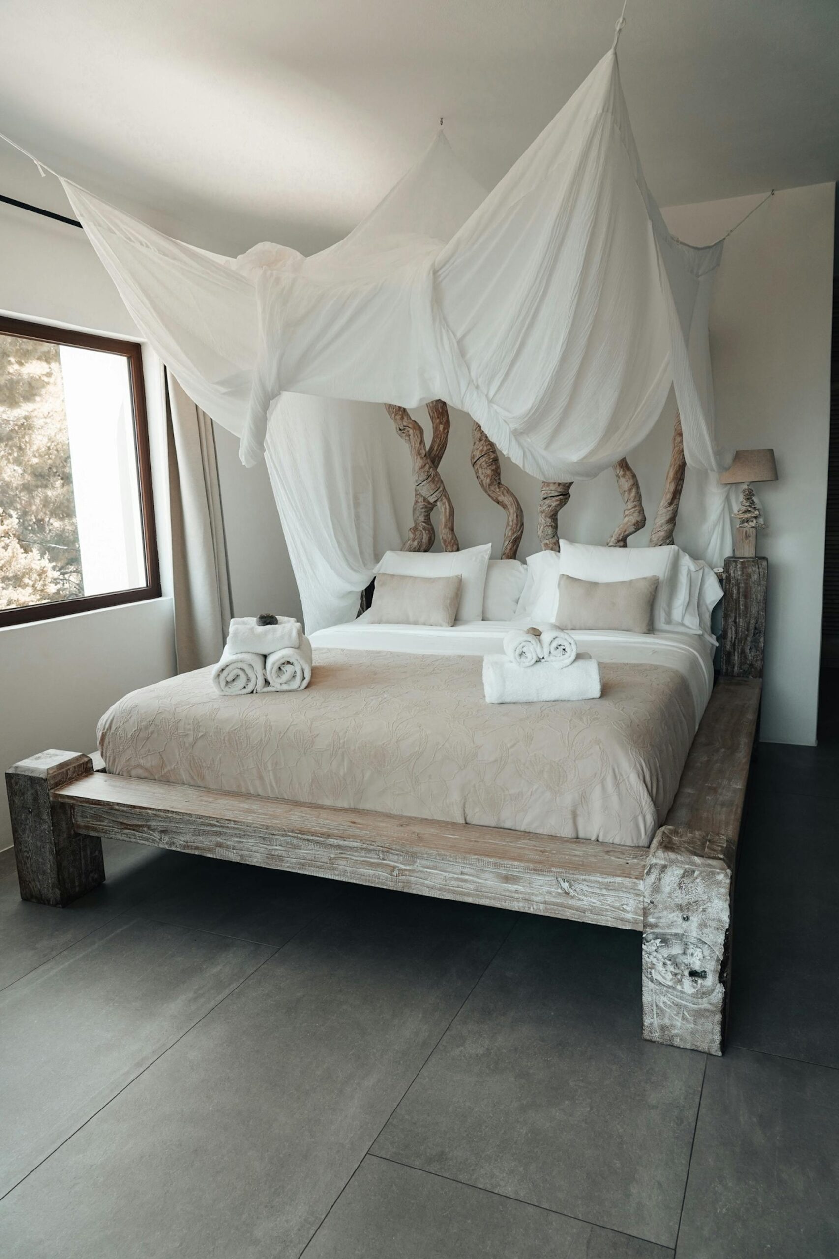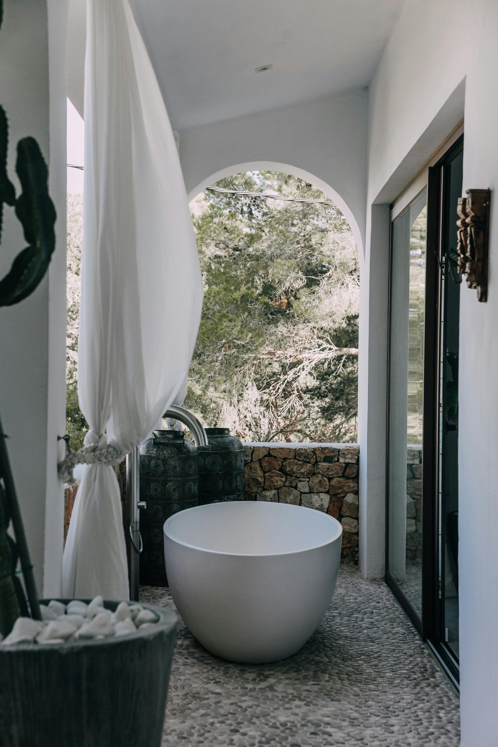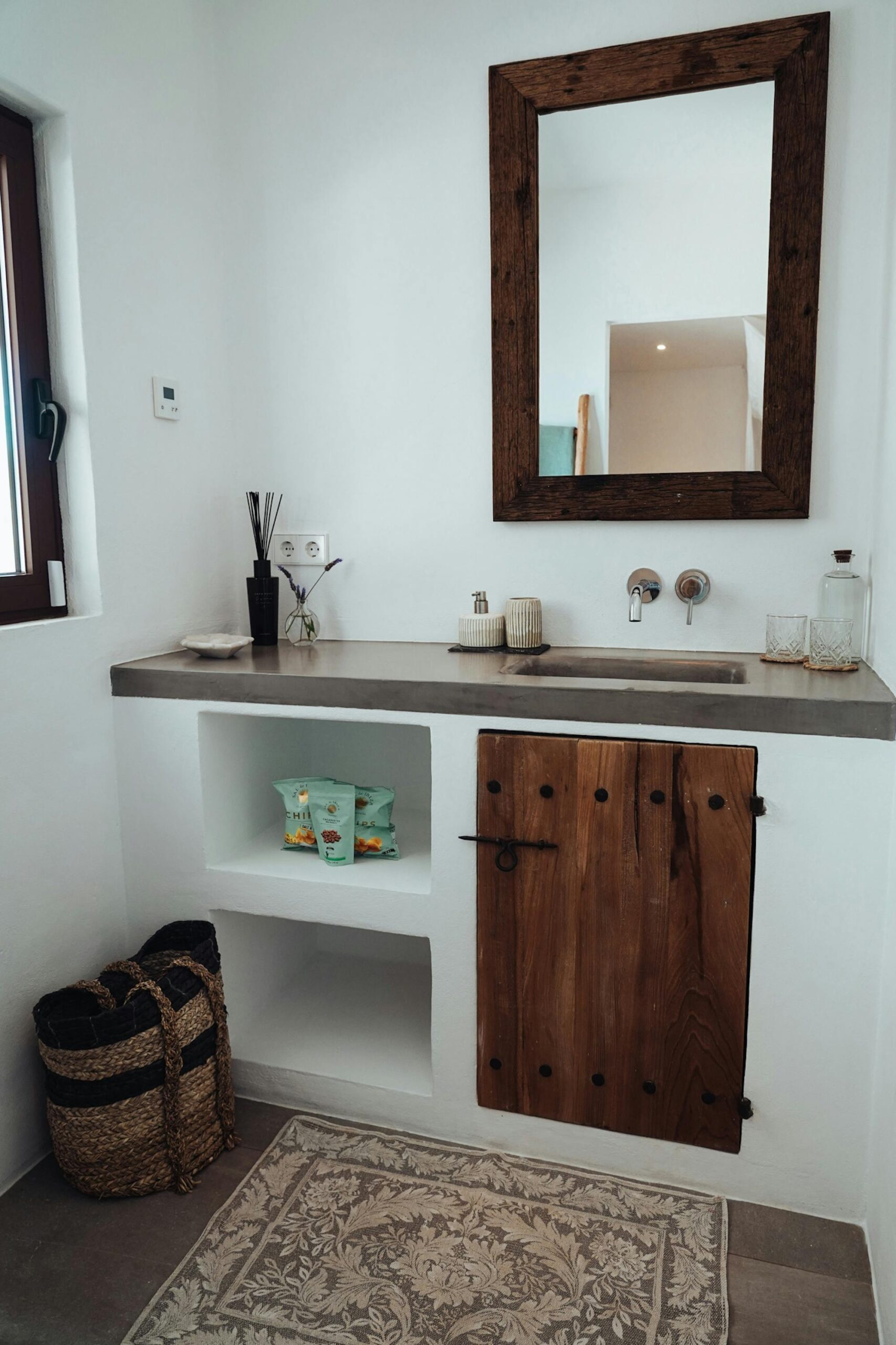 Zarza Dorada has three luxury bathrooms with wonderful rain showers. The sabina wooden bathroom furniture, including Balinese washbasins, provide the mix of Bali and Ibiza that you will find throughout the whole house. The master bedroom also offers its guests a double rain shower and an outdoor bath. Take a bath or shower in the outdoors and enjoy the wonderful warm water with a phenomenal view.