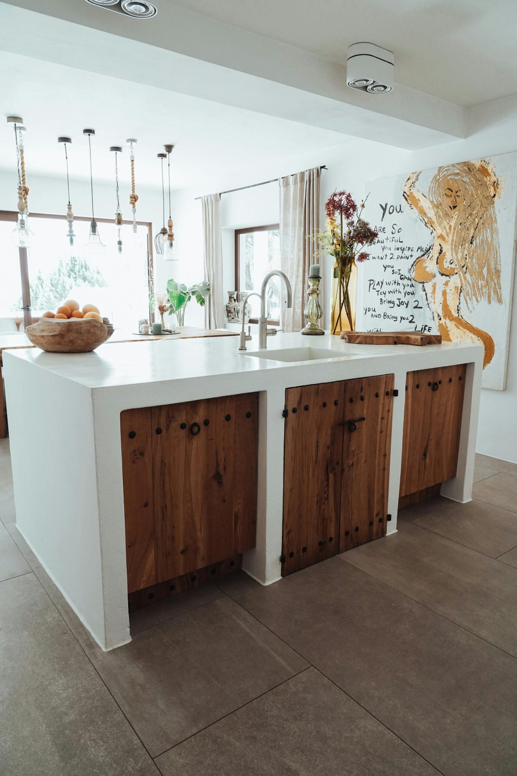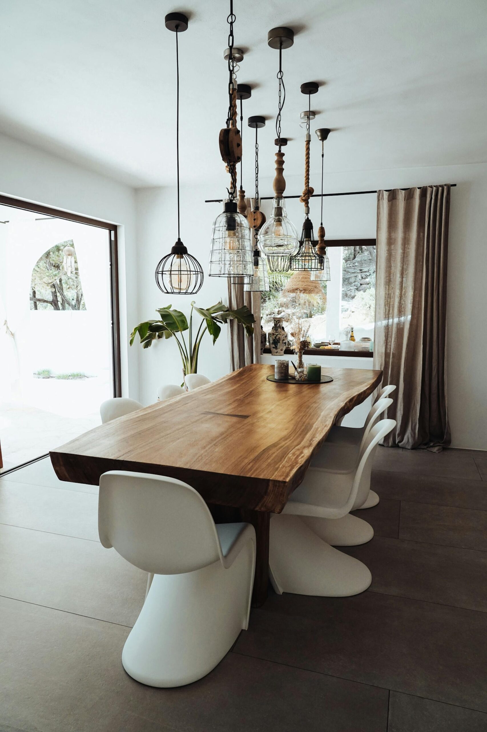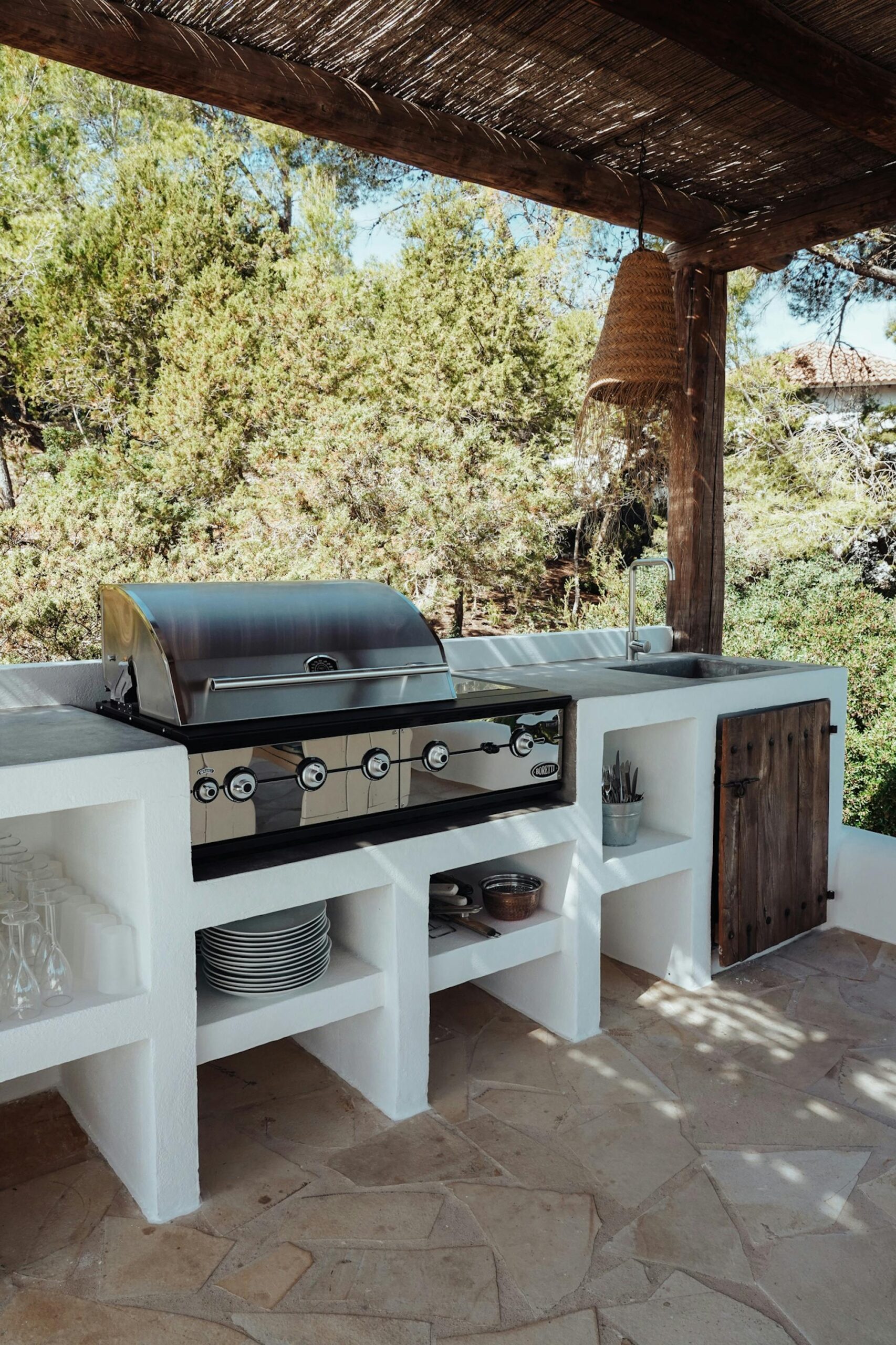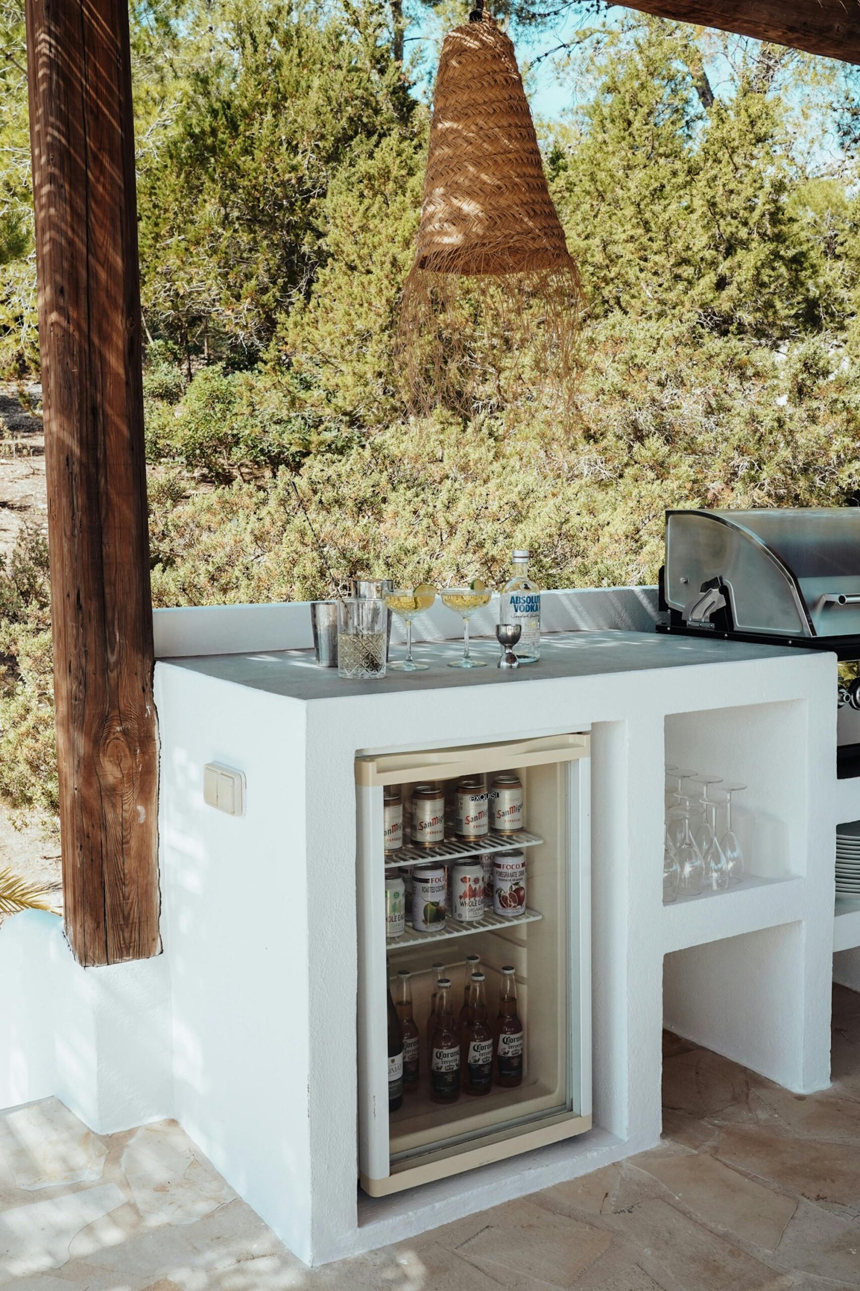 The interior of this villa can best be described as a tasteful mix of Ibicenco and Balinese influences. As a guest, you really have everything here! In the living room you will find a wonderful lounge sofa and a 62-inch television, including a satellite receiver and DVD player. The professional dolby surround system completes the cinema feeling – all you need for a wonderful evening at home. Light the fireplace, pour a glass of wine, turn on a movie and just relax!