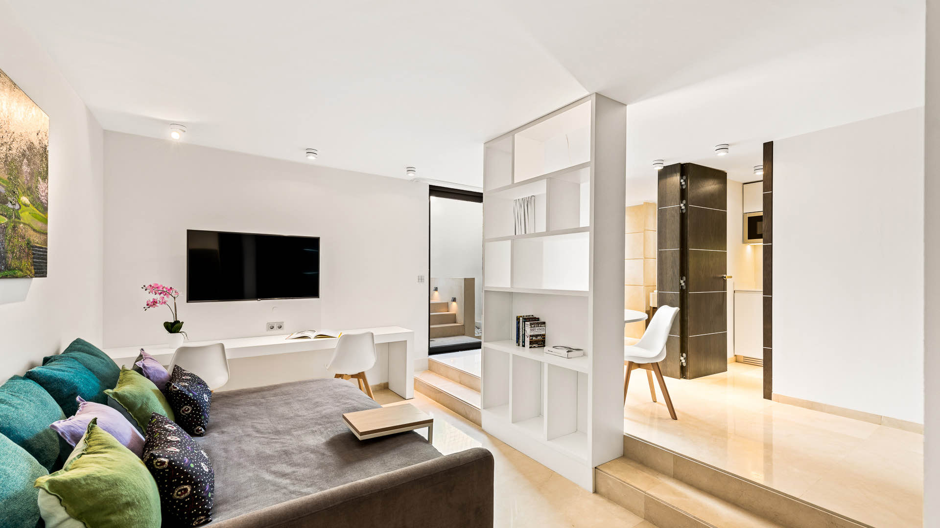 ✔ Sleek modern interiors punctuated by natural light, curated art, and designer furnishings.